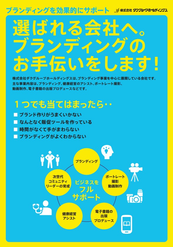 当社は選ばれる会社になるためのブランディング事業を中心に展開してきましたが、この度【共著ブランディング】、【ポトレブランディング】を加えて今までよりも更に効果的なサポートができるようになりました。