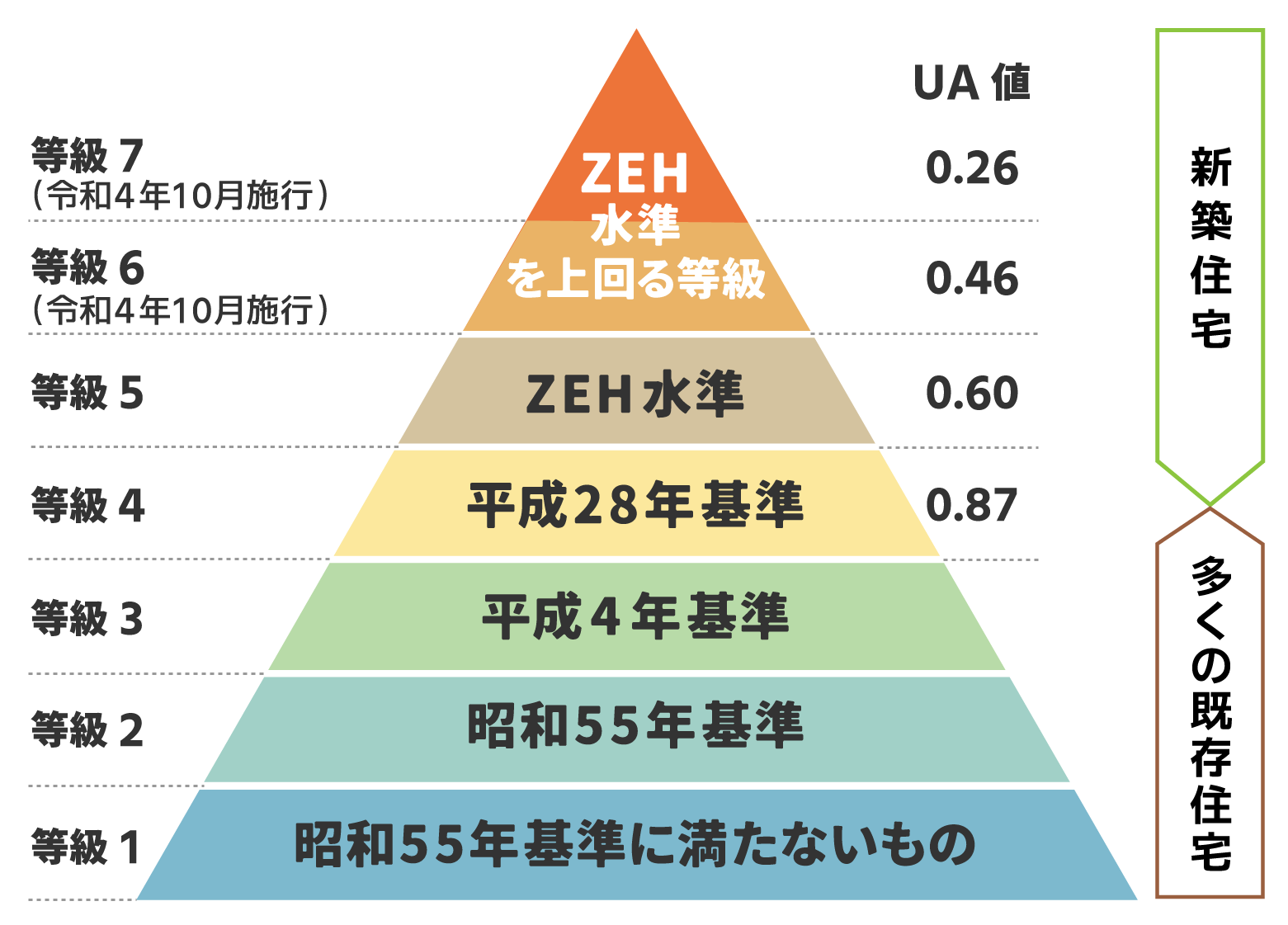 2022年10月1日に施行された住宅性能表示制度において、断熱等性能等級6・7(戸建住宅)の基準(外皮平均熱貫流率(6地域)UA値:0.26、ηAC値:2.8)が新設され、住宅の省エネ基準比でエネルギー消費量を40%削減する高い断熱性能が求められている中、国土交通省が指摘するように、私たちは少子高齢化の進行に伴う、住宅ストック(既存住宅)の増加、及び空き家問題の深刻化に直面しています。