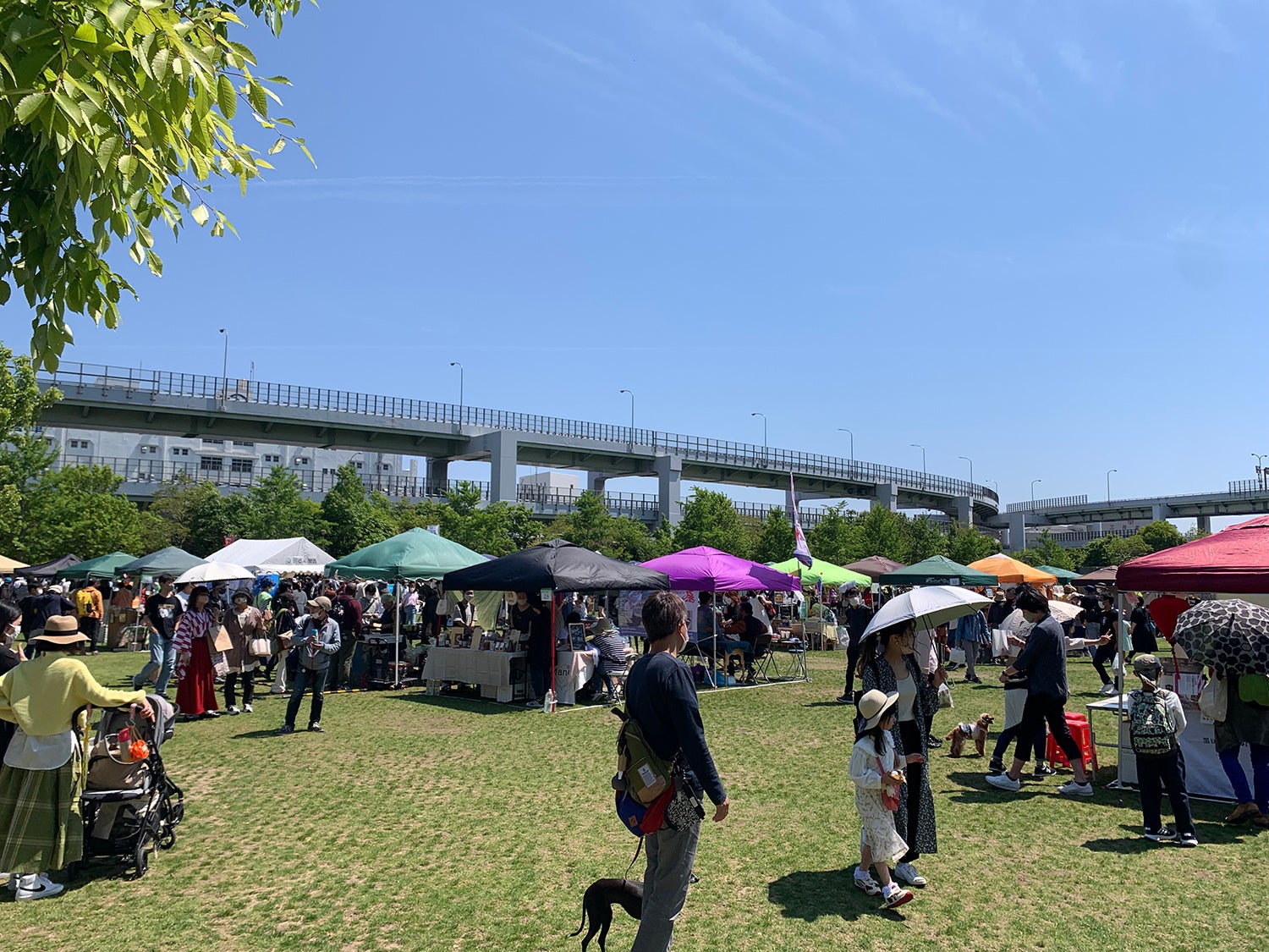 会場の「みなとのもり公園」は広々とした芝生がある、海沿いの緑豊かな公園です。レジャーシートや小さなテントを立ててピクニックついでに楽しまれる方も多数!