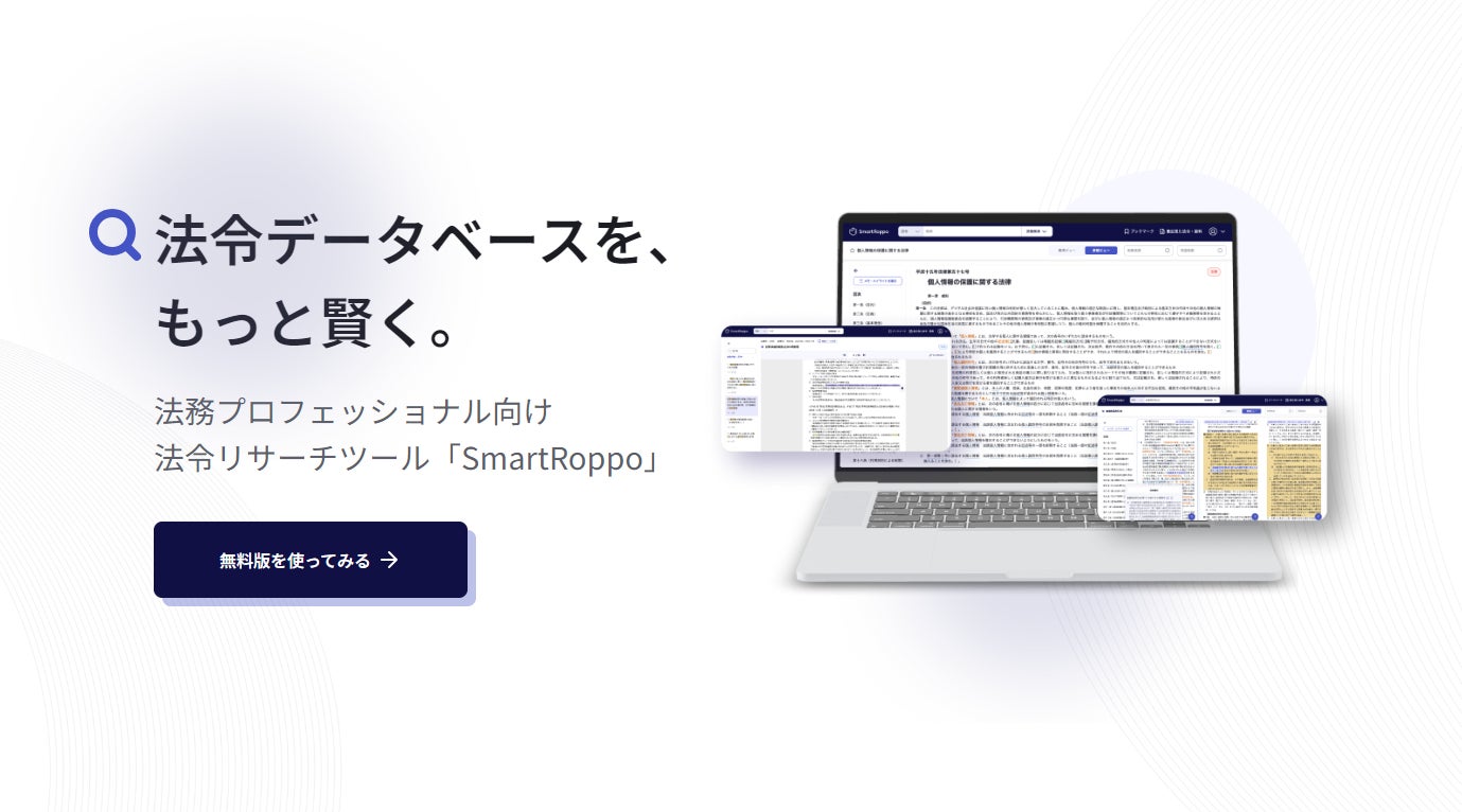 SmartRoppo株式会社は、法務プロフェッショナル向け法令リサーチツール「SmartRoppo」の有償β版の提供を2024年3月1日(金)より開始いたしました。