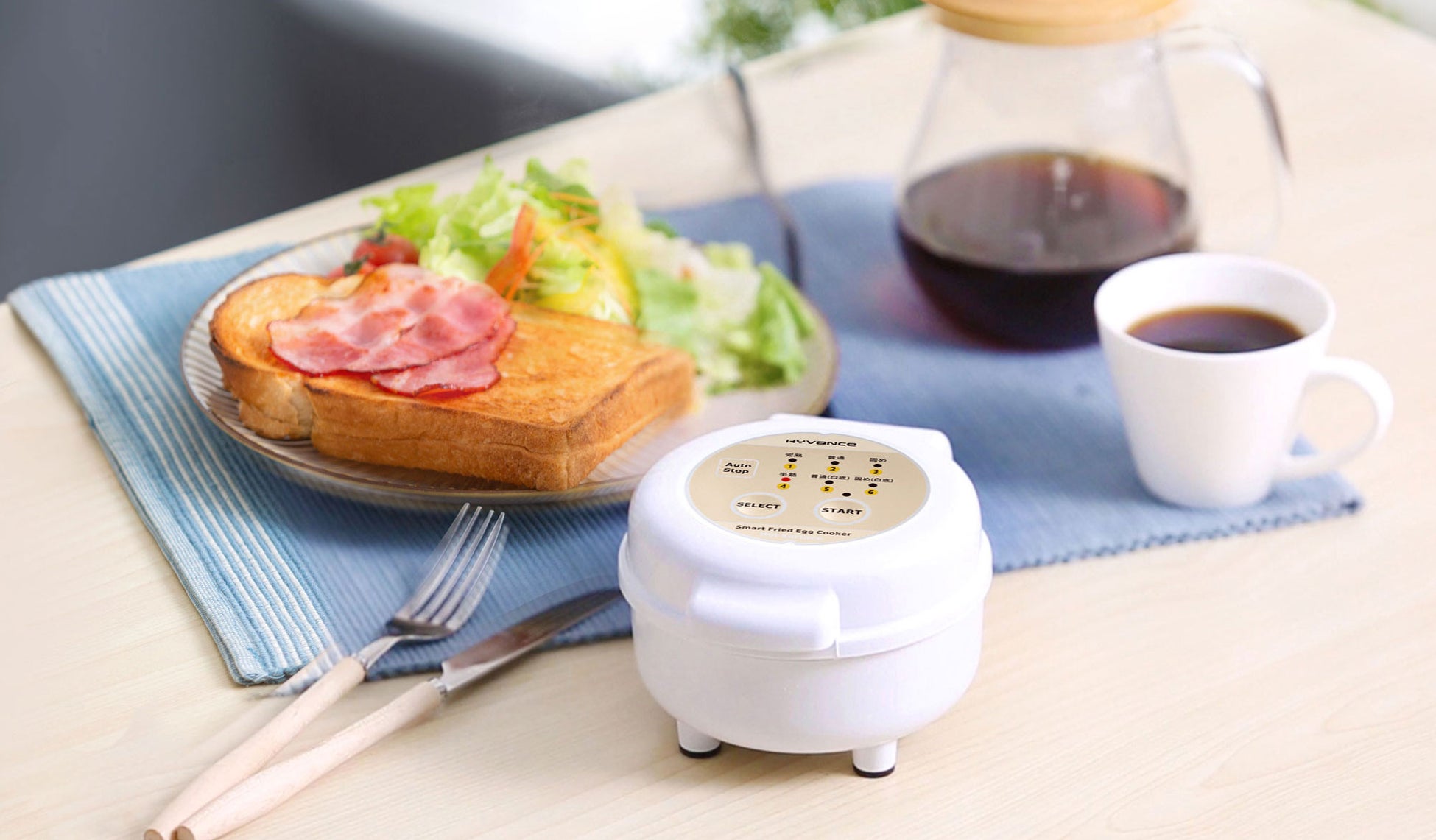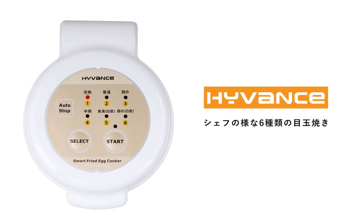「HYVANCE」なら料理人が作るような6種類の焼き加減の目玉焼きが自動完成!コンロのそばに退屈して立ち、焼きすぎかフライパンを調べる必要もありません。昔ながらの問題に対するシンプルな解決策となる製品です。