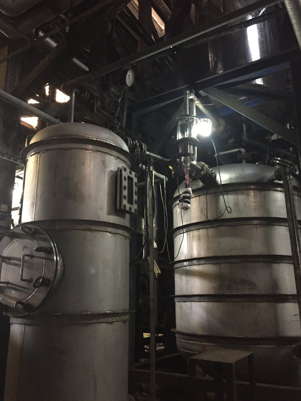 醪に蒸気を吹き込み、芋焼酎の原酒を抽出します。