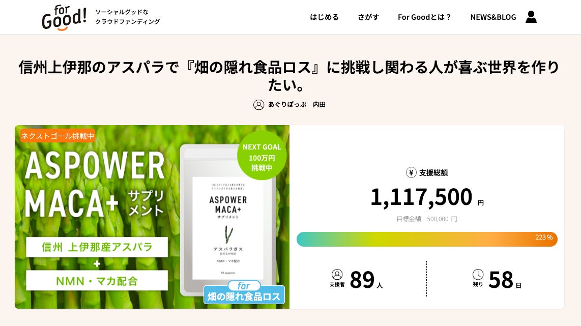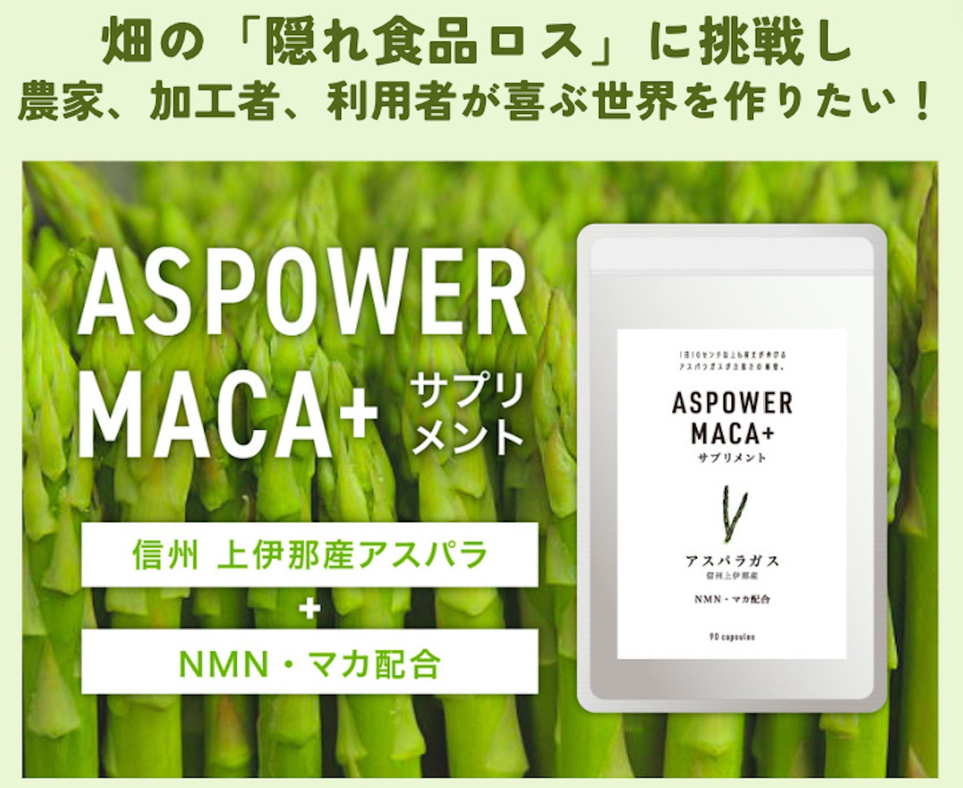 【クラファン開始2日で200%達成】信州・上伊那産の廃棄アスパラにマカすっぽん!元気と美容のサポートサプリメント「アスパワー」が誕生