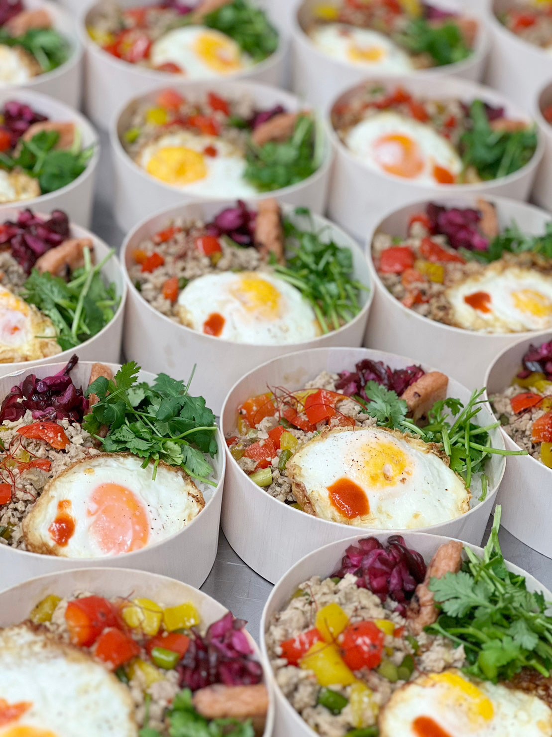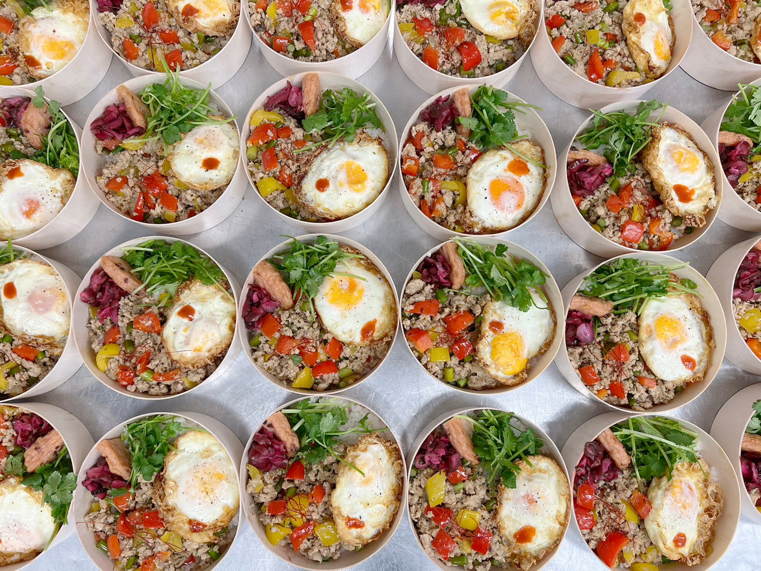 < 地元藤沢の食材をふんだんに使ったガパオライス >