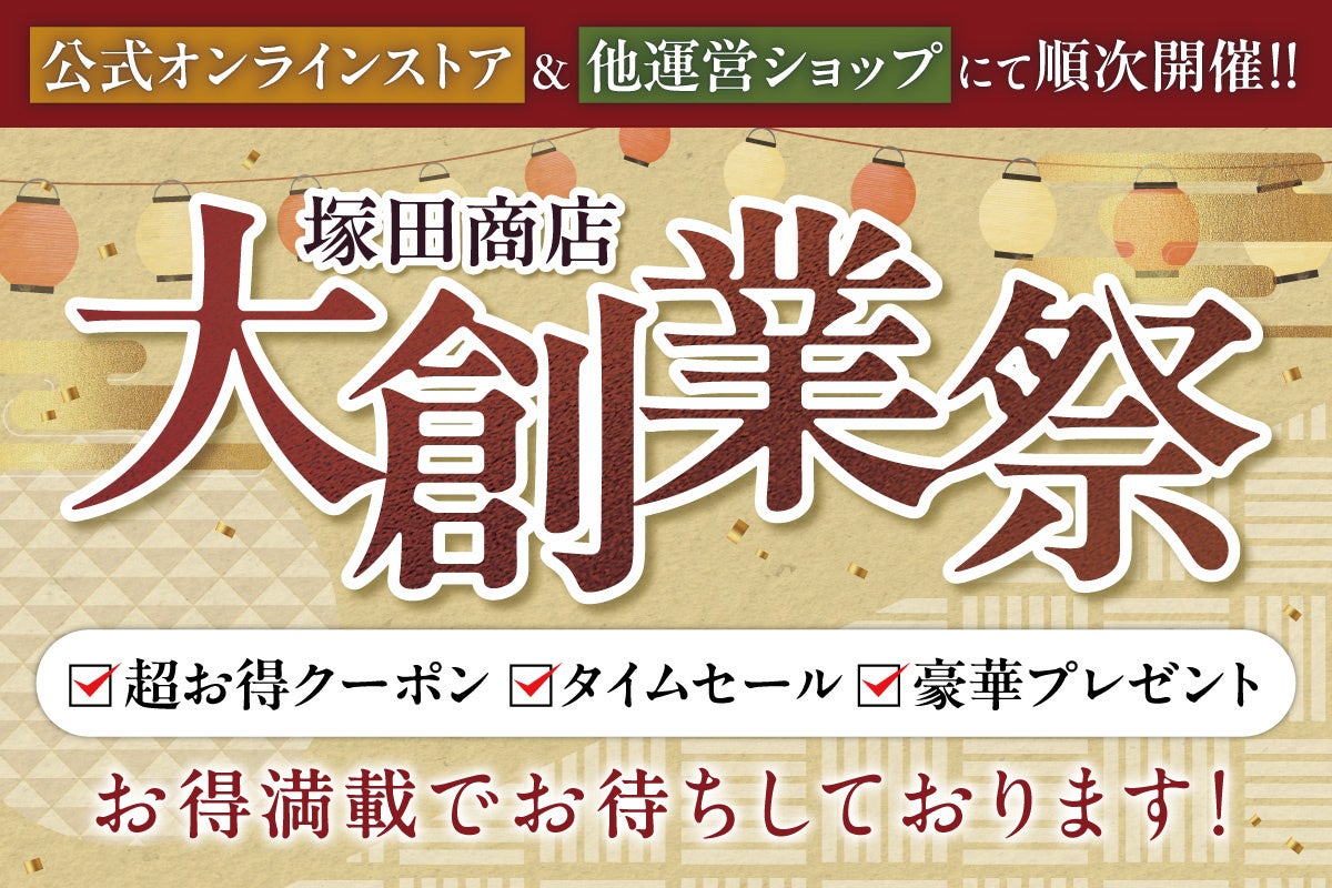 創業祭は、初めて塚田商店を知っていただいた方も含め、すべての方々に当店の商品をお得に楽しんでいただく場を提供したいと思っています。ぜひ、この機会に創業祭にご参加いただき、お得な買い物をお楽しみください。