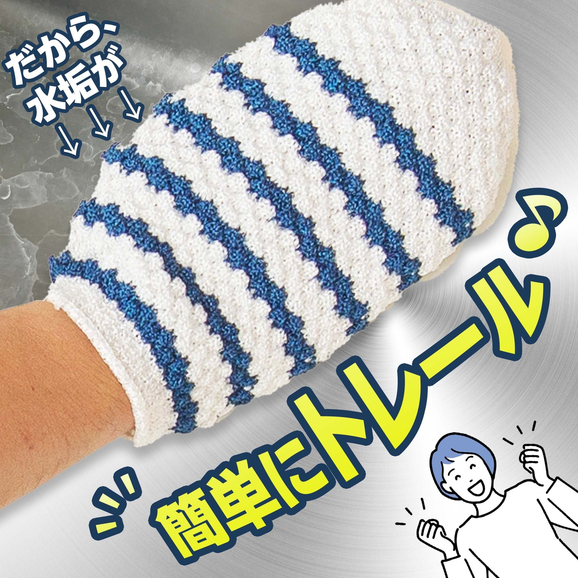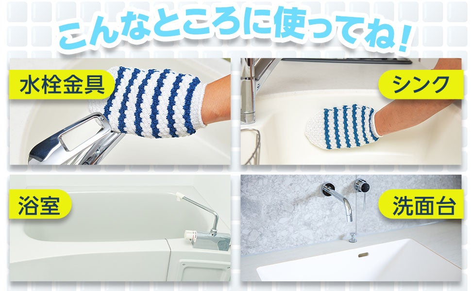 手にはめてこするだけで、簡単に水垢を落とせるミトン型のお掃除グッズです。使用方法は水に濡らしてこするだけと、いたってシンプル。水栓金具やシンクに傷をつけず、ピカピカの状態を保つことができます。