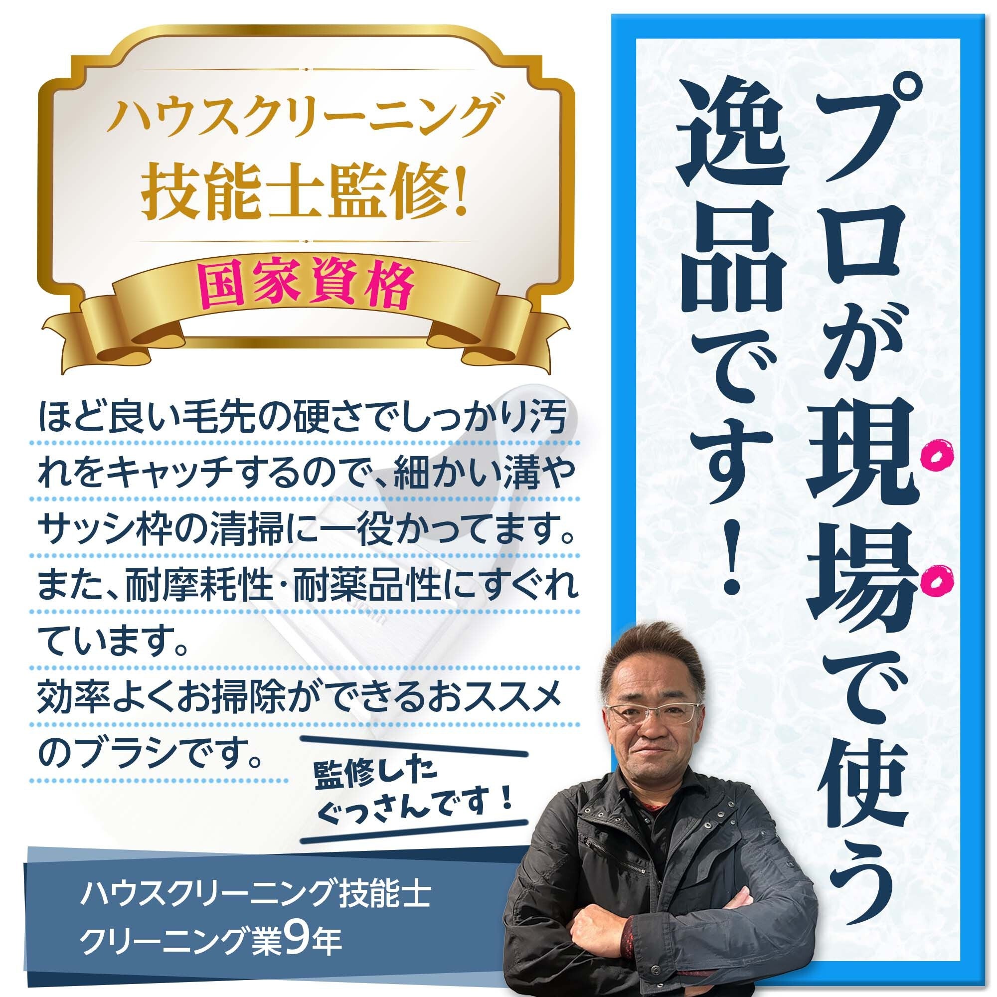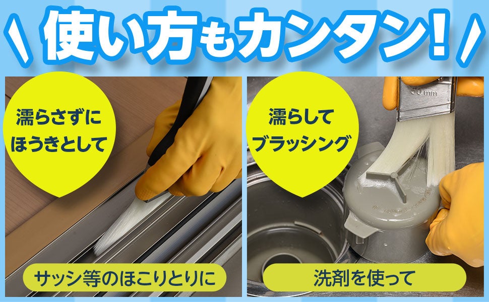 耐摩耗性や耐薬品性に優れており、洗剤と合わせてお使いいただけます。特に、今まで歯ブラシでお掃除をしていた方におすすめしたい一品です。