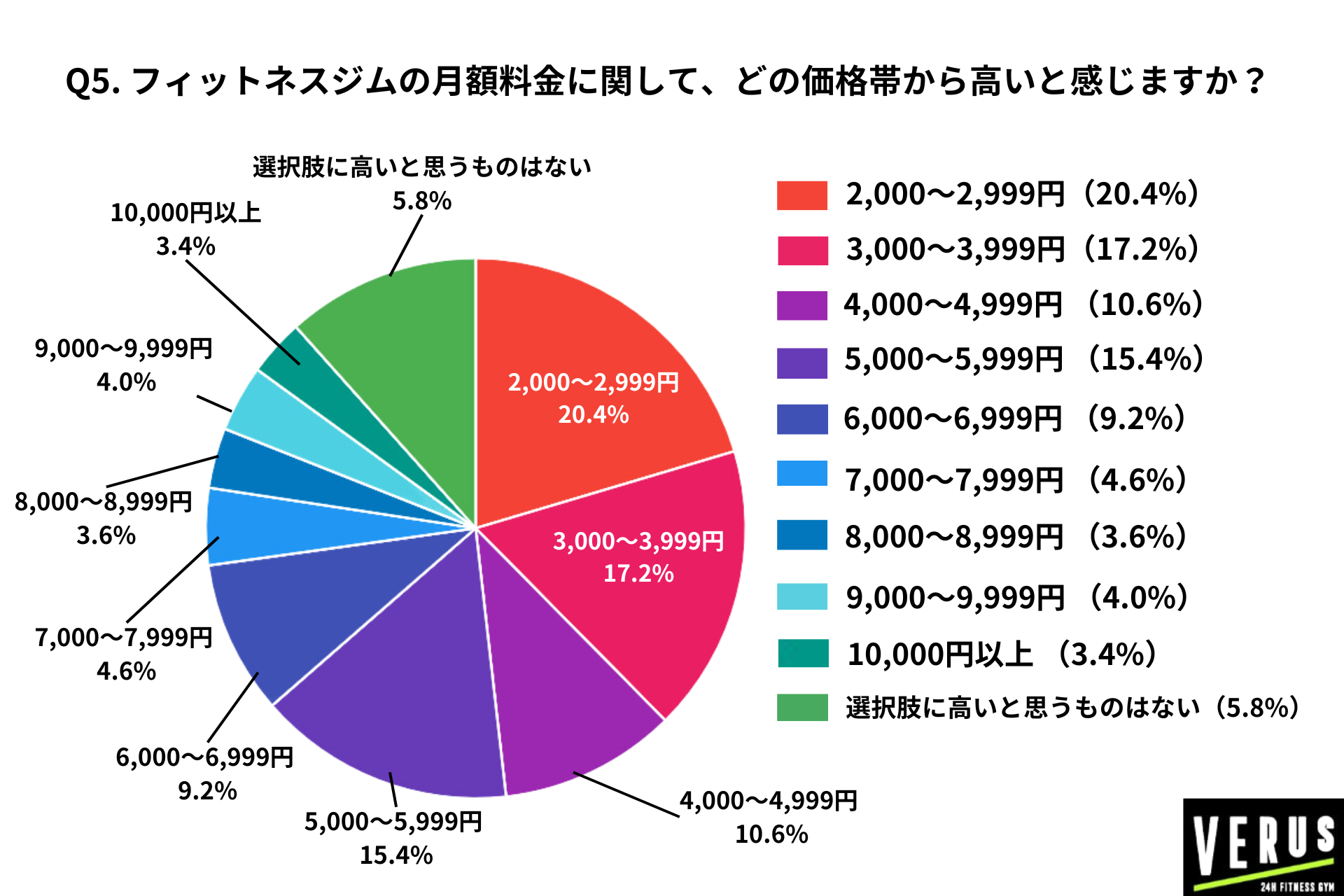 調査結果⑤ フィットネスジムの月額料金に関して、どの価格帯から高いと感じますか?