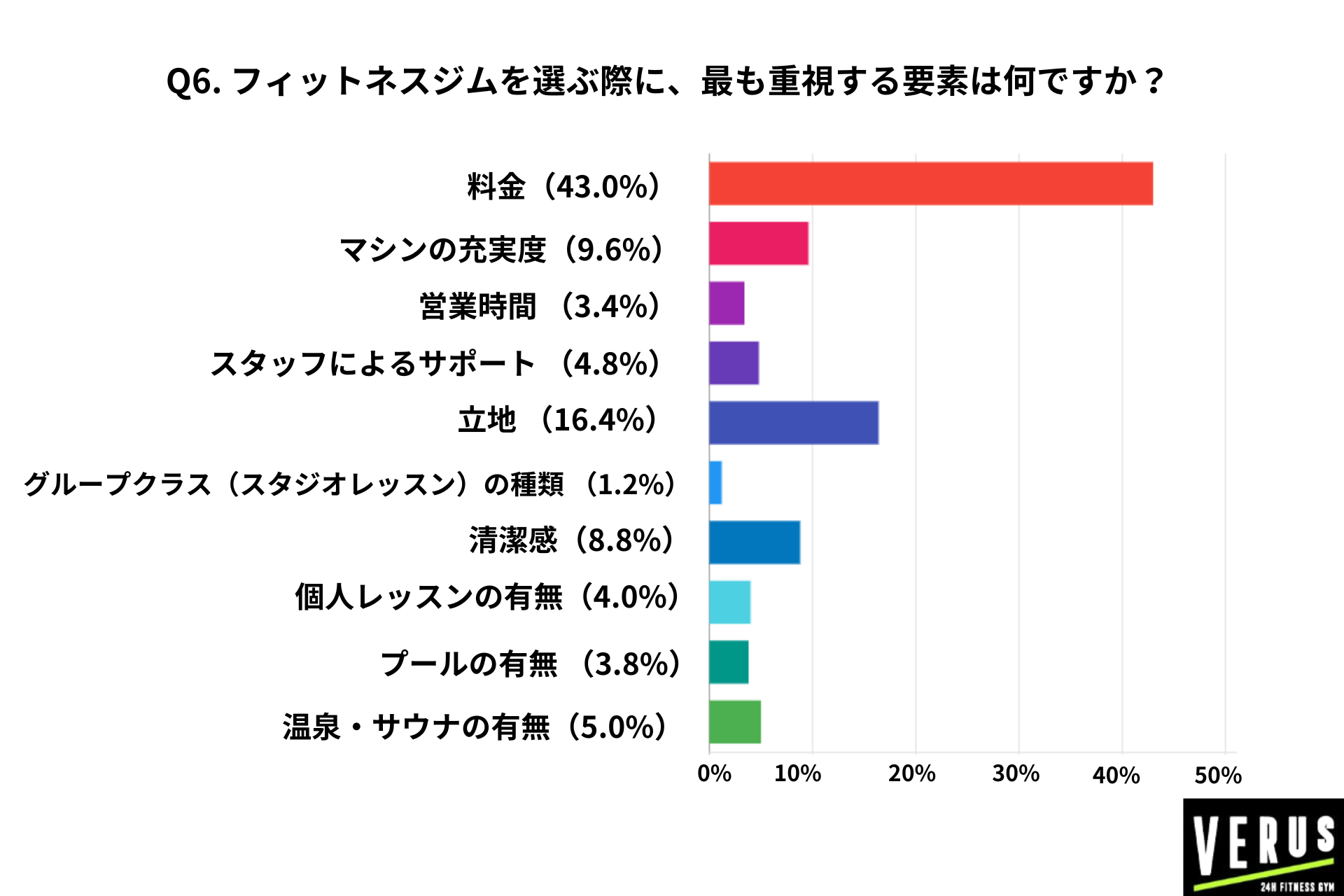 調査結果⑥ フィットネスジムを選ぶ際に、最も重視する要素は何ですか?