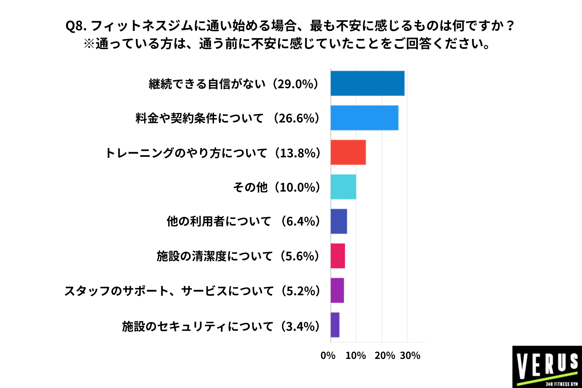 調査結果⑧ フィットネスジムに通い始める場合、最も不安に感じるものは何ですか?