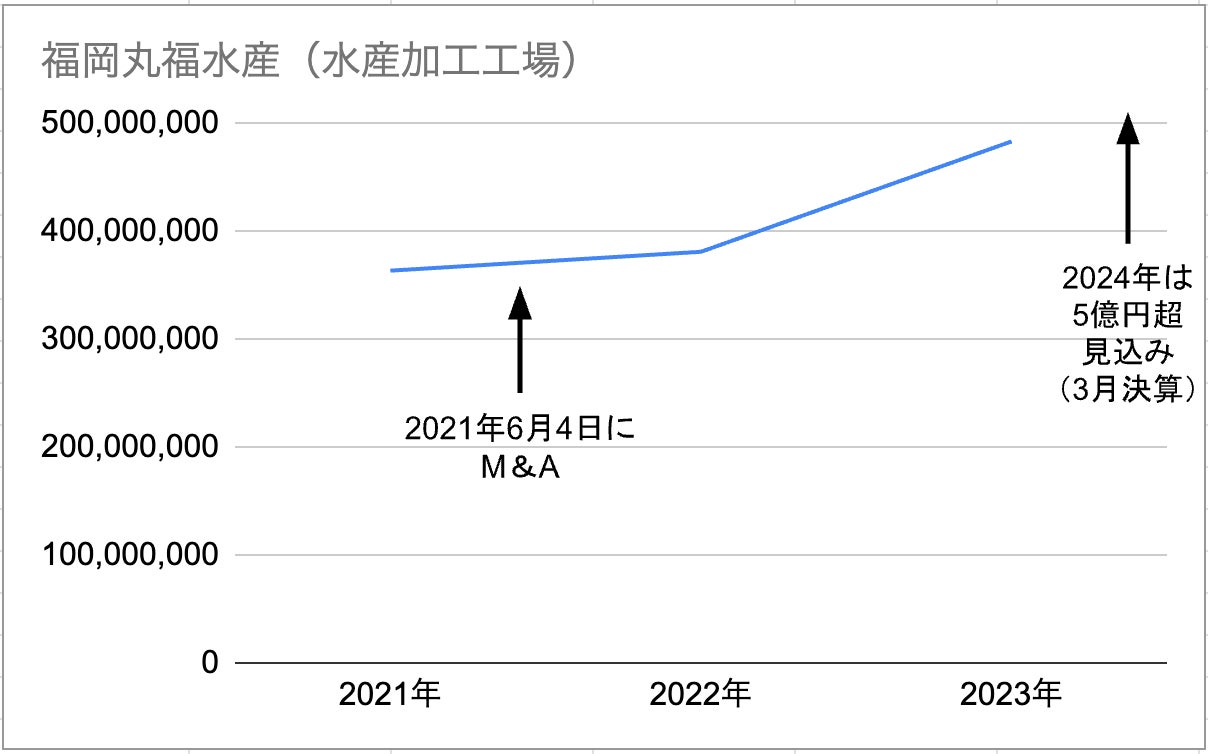 ◯ 福岡丸福水産(水産加工工場)のM&A後の業績推移
