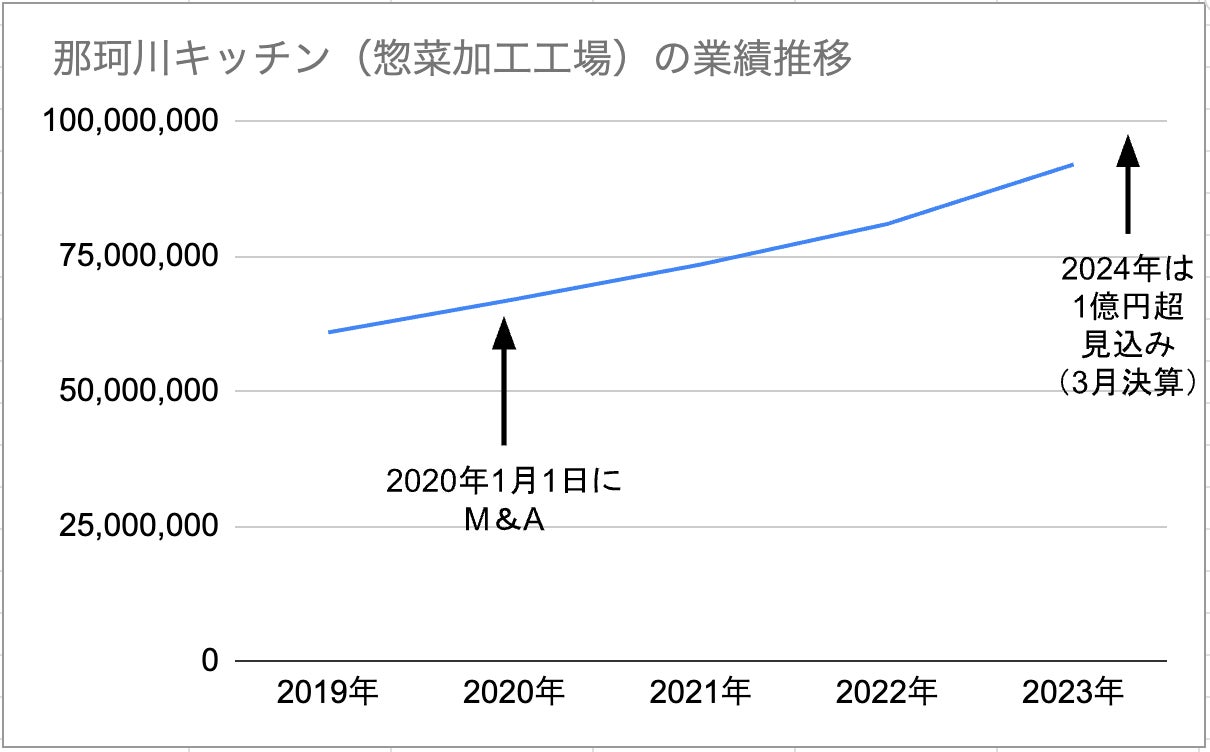 ◯ 那珂川キッチン(惣菜加工工場)のM&A後の業績推移
