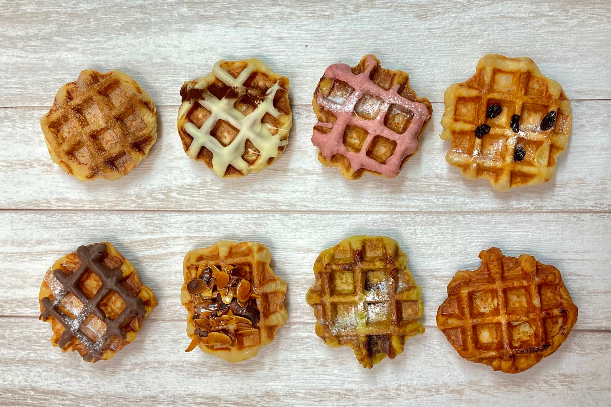 毎日日替わりで、7~8種ほどのベルギーワッフルを販売。
