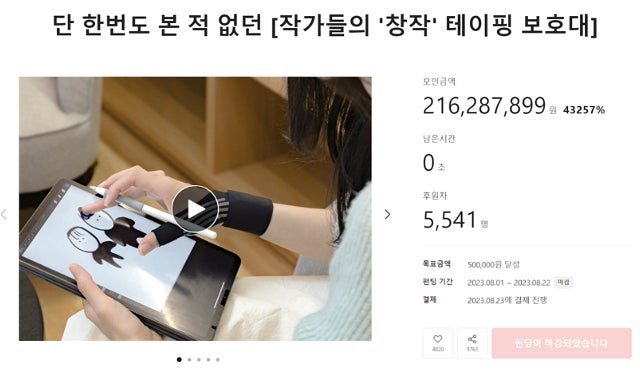 ◾️韓国クラウドファンディングサイトで歴代ランキングトップを獲得