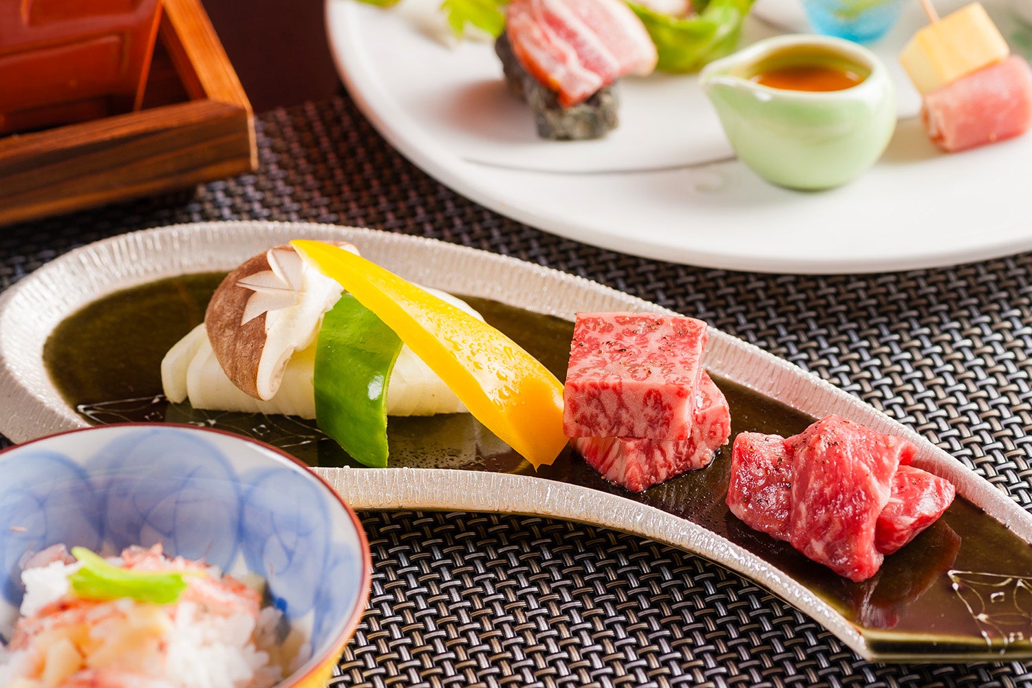 旅先でのお食事は楽しみのひとつ。『紅葉 KUREHA』では季節素材によるメニューはもちろん、その提供スタイルもおいしい想い出の大切な要素と捉え、これまでの<1泊2食>ではない<2食1泊>をテーマとした多彩なご夕食をご用意いたしました。