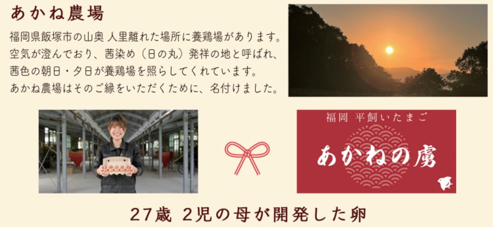 株式会社メメント あかね農場(本社:福岡県福岡市、代表取締役社長:森智寛)は福岡県飯塚市にて2024年3月1日より平飼い卵『あかねの虜』のブランドを立ち上げた事をお知らせします。