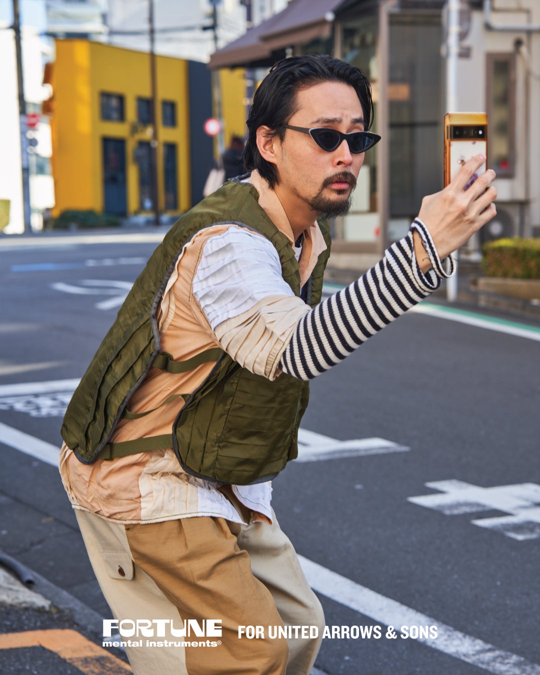 「元々日本のファッションや音楽のカルチャーが好きで、そこから多くを学びました。Fortune W.W.D.立ち上げ当初から日本でコレクションを発表するのが目標だったので、UNITED ARROWS & SONS 原宿本店の吉岡レオさんから声をかけていただき非常に嬉しかったです。レオさんは展示会場でほぼ全てのアイテムを一点ずつ試着してくれ、Fortune W.W.D.のアイデンティティを理解してくれていると感じます。UNITED ARROWS & SONS 原宿本店でのローンチポップアップでは日本の皆さんに楽しんで貰えるようなギフトも用意しています。是非、期間中に足を運んでください。」