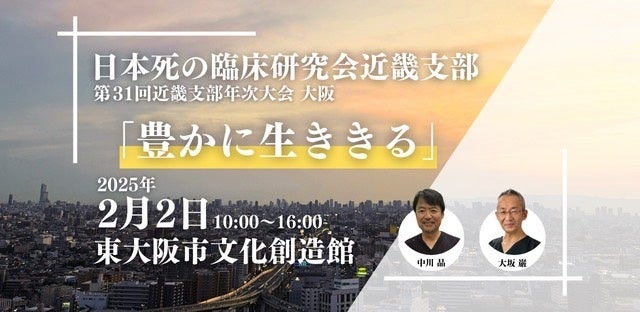 一般社団法人日本死の臨床研究会では、第31回近畿支部年次大会(後援:東大阪市、東大阪プロジェクト)を2025年2月2日(日)に東大阪市文化創造館小ホールにて開催いたします。