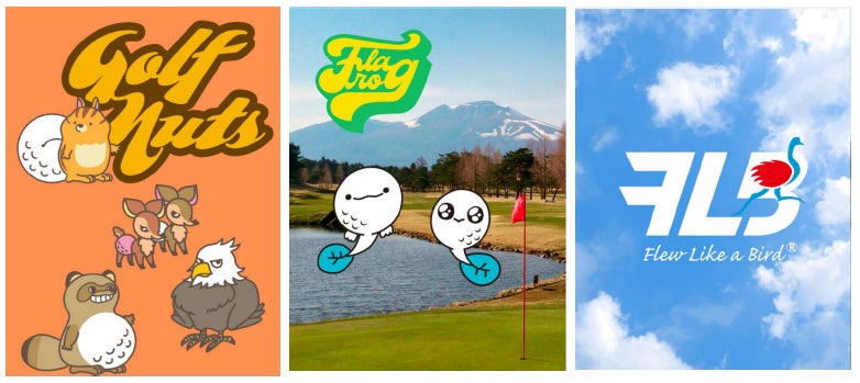 ゴルフに狂ったようにはまってしまう人々を象徴したブランドです。ゴルフ場にはまってしまっているのは人だけでしょうか?ゴルフプレイ中、よくホールで目にする様々な動物たちもひょっとしたら・・・?ゴルフ場によくあらわれる、そんな動物たちをキャラクターとしてあしらっています。