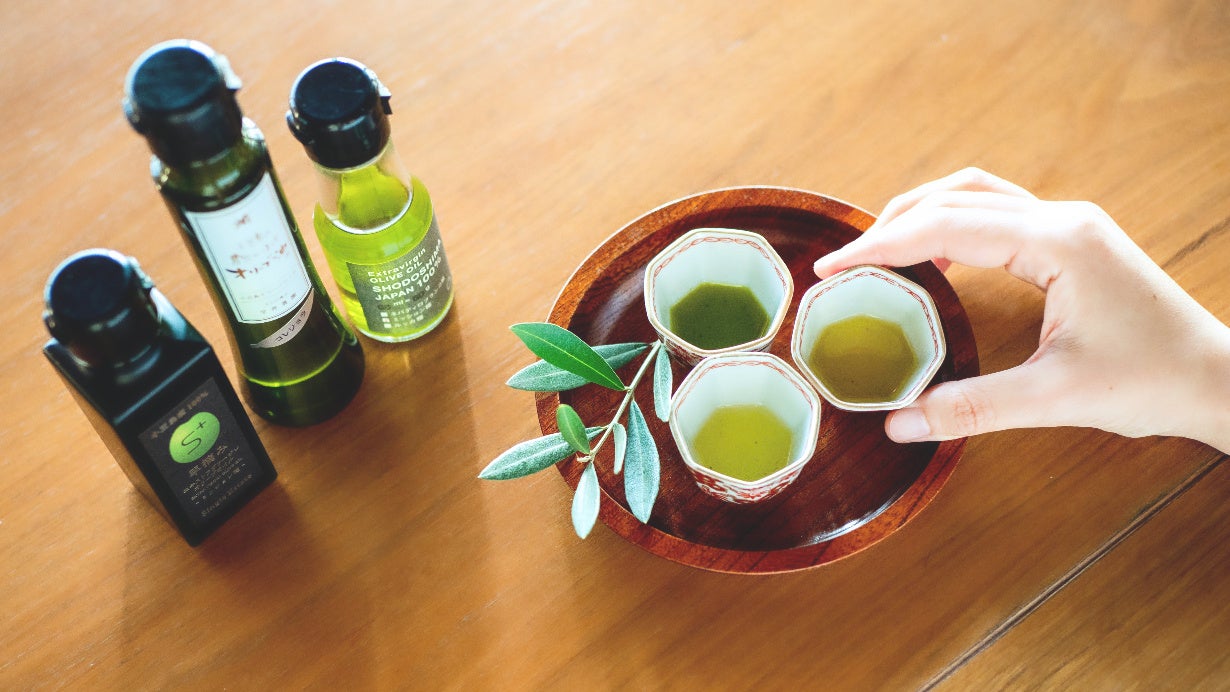 別邸「海音真里」に併設する実店舗では、真里の自家製調味料だけでなく、小豆島産の高品質なオリーブオイルを取扱いしており、「海音真里」にお泊りの方には、「オリーブ会席」と題して、和食とオリーブオイルのペアリングをお愉しみいただき、気に入ったものをお求めいただけます。