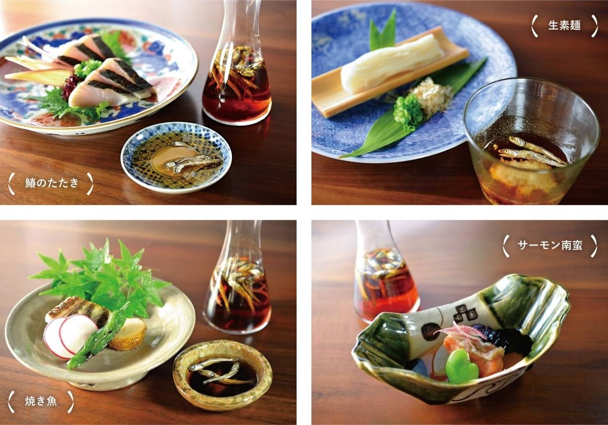 今回は、「いりこ酢」と組み合わせて楽しめる、他の調味料やオリーブオイルとのセットもご用意しました。それぞれ単独使いはもちろん、組み合わせても楽しいセットです。