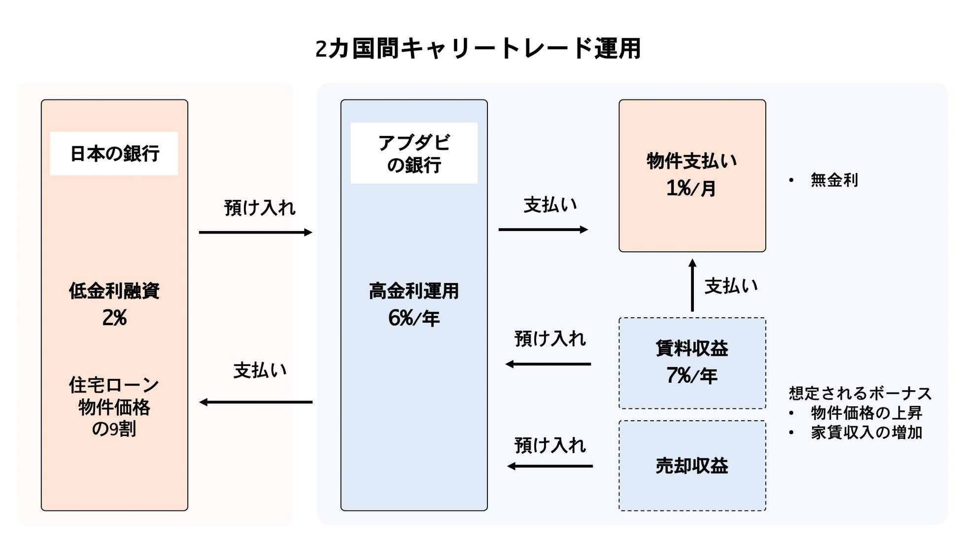 日本の低金利ローン+アブダビの高金利預金+賃貸収入により、不動産投資の収益性を高めるだけでなく、インフレに対抗するための手段としても機能します。