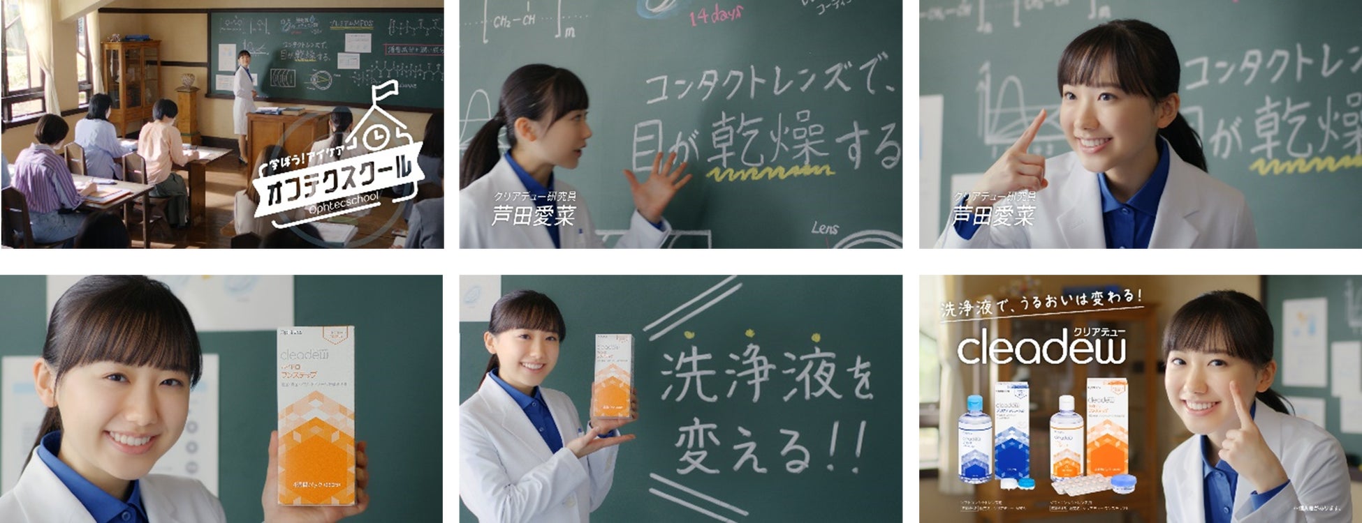 本CMでは、学校を舞台に研究員役の芦田愛菜さんが幅広い世代の方が抱える瞳やコンタクトレンズに関わる悩みの解決方法をレクチャーしていくストーリーです。