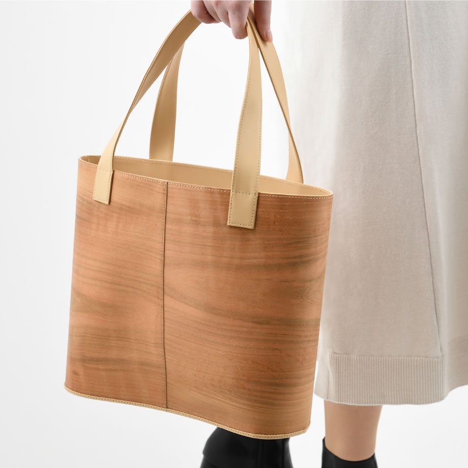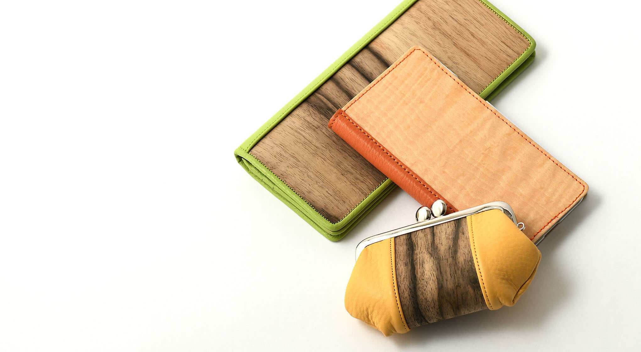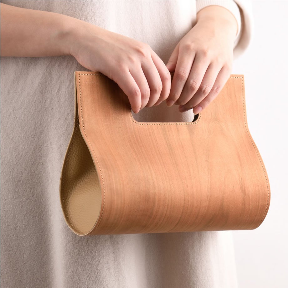 木製品や弊社が開発した「縫える木」を使ったバッグなど |