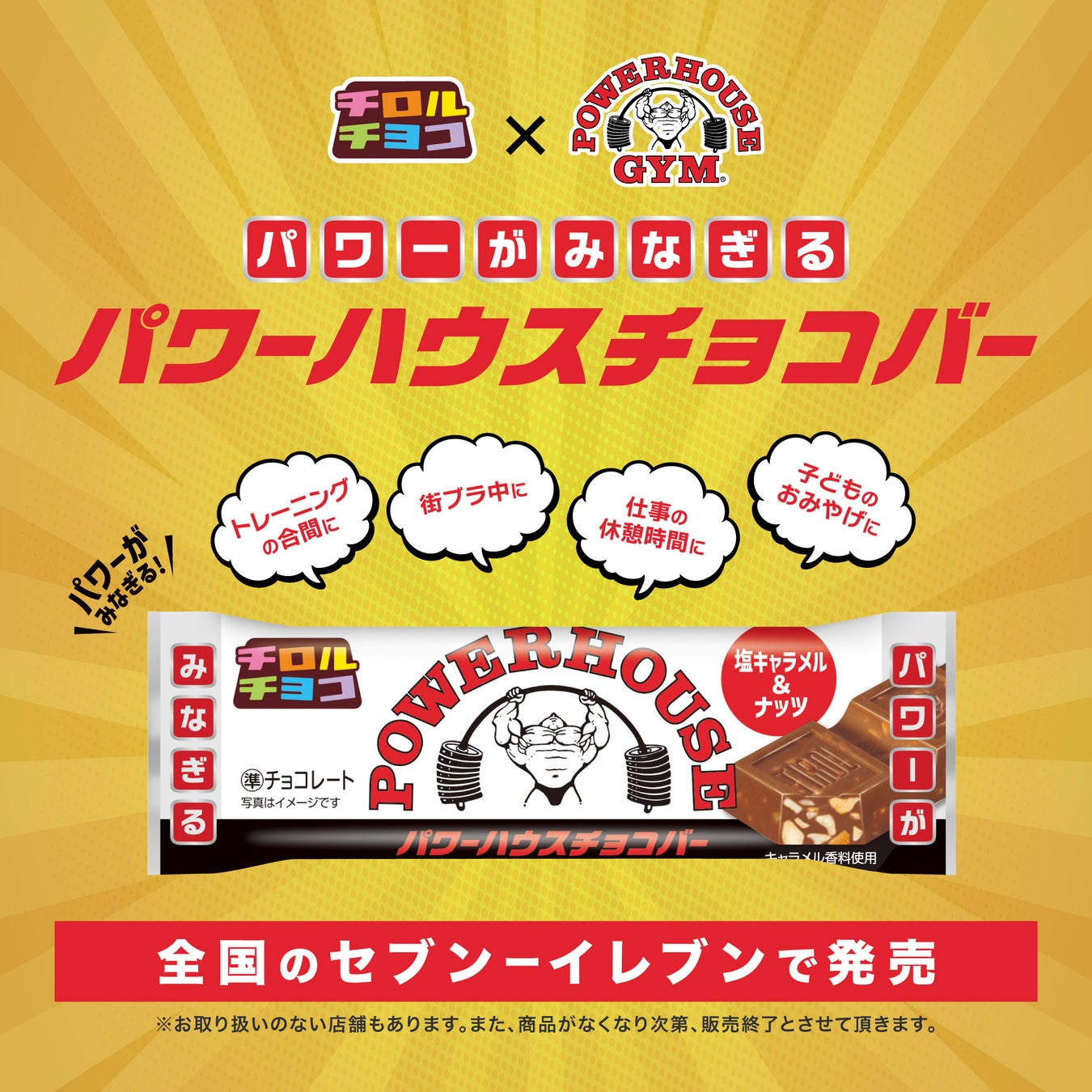 パワーハウスジム監修のもと、チロルチョコ株式会社にご協力いただき、「パワーハウスチョコバー」を発売。プロテインバーではなく、あくまで今年で50周年を迎えるパワーハウスジムの名前の由来ともなった、チョコレートバーを模した記念商品として、老若男女問わず、すべての人々に様々なシーンで食べてもらいたいという願いも込め、3月18日(月)全国のセブン‐イレブンで発売します。