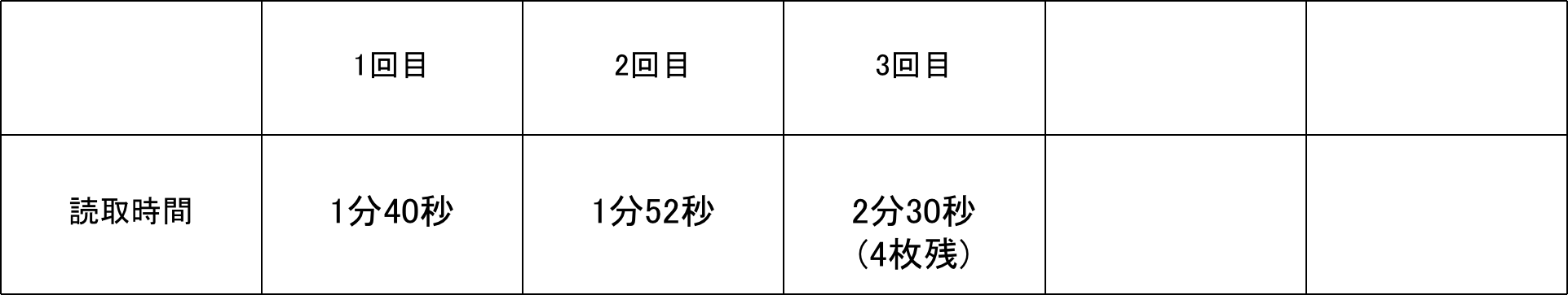 全数を読み取るのに2分弱要し、3回目は全数読めなかった。