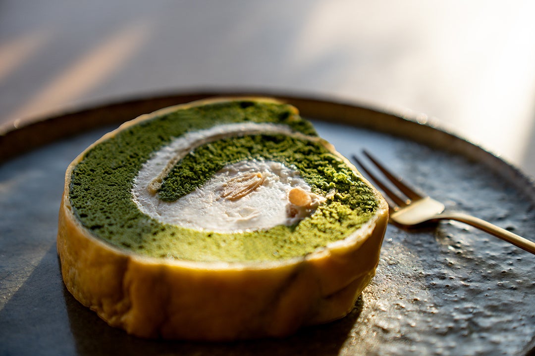ふわふわのスポンジ生地には「桑の葉茶」、それに包まれたクリームには「あけぼの大豆」が含まれていて、口当たり抜群のクリームは、一口食べるたびに体の中から幸せが広がります。