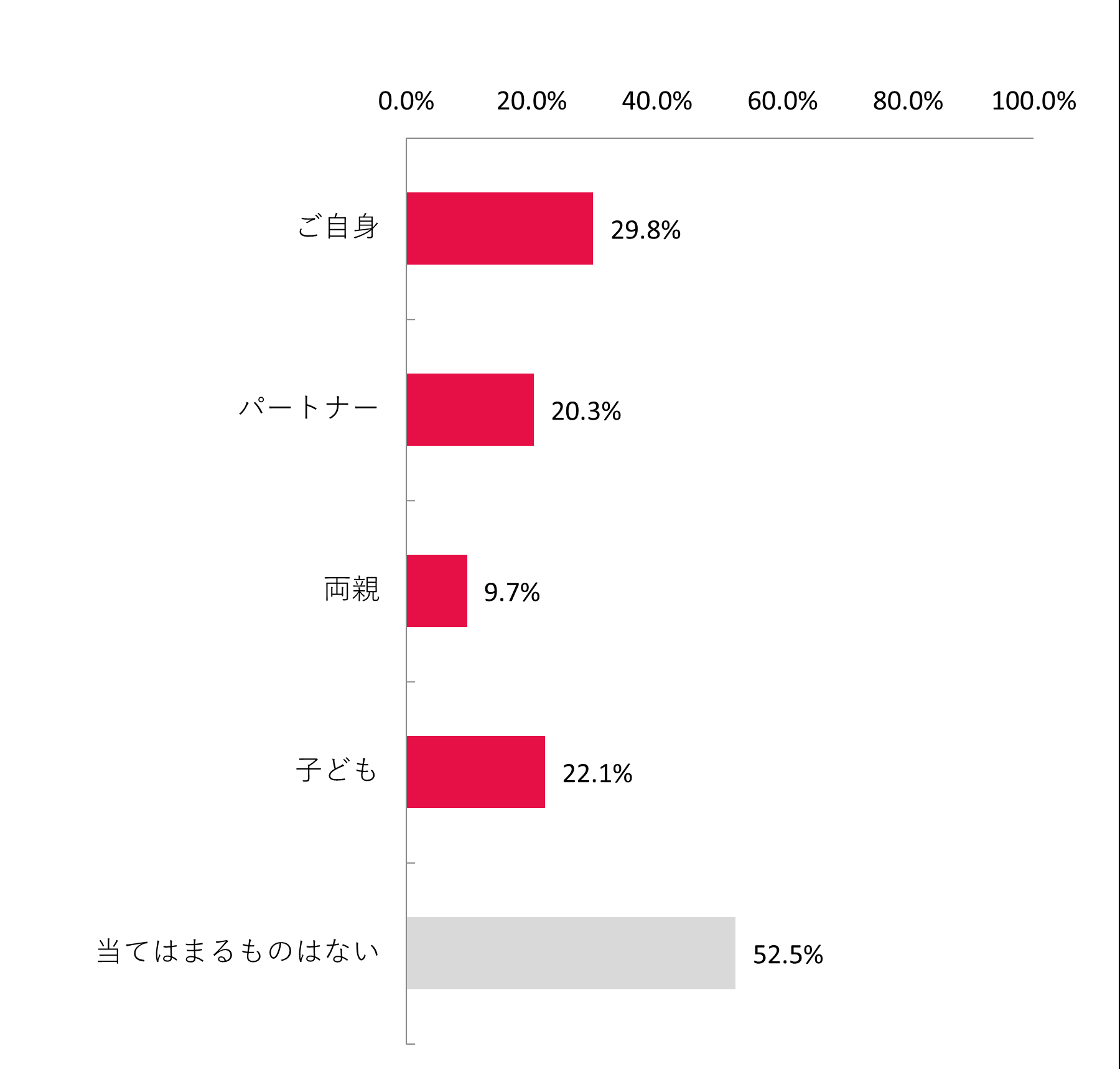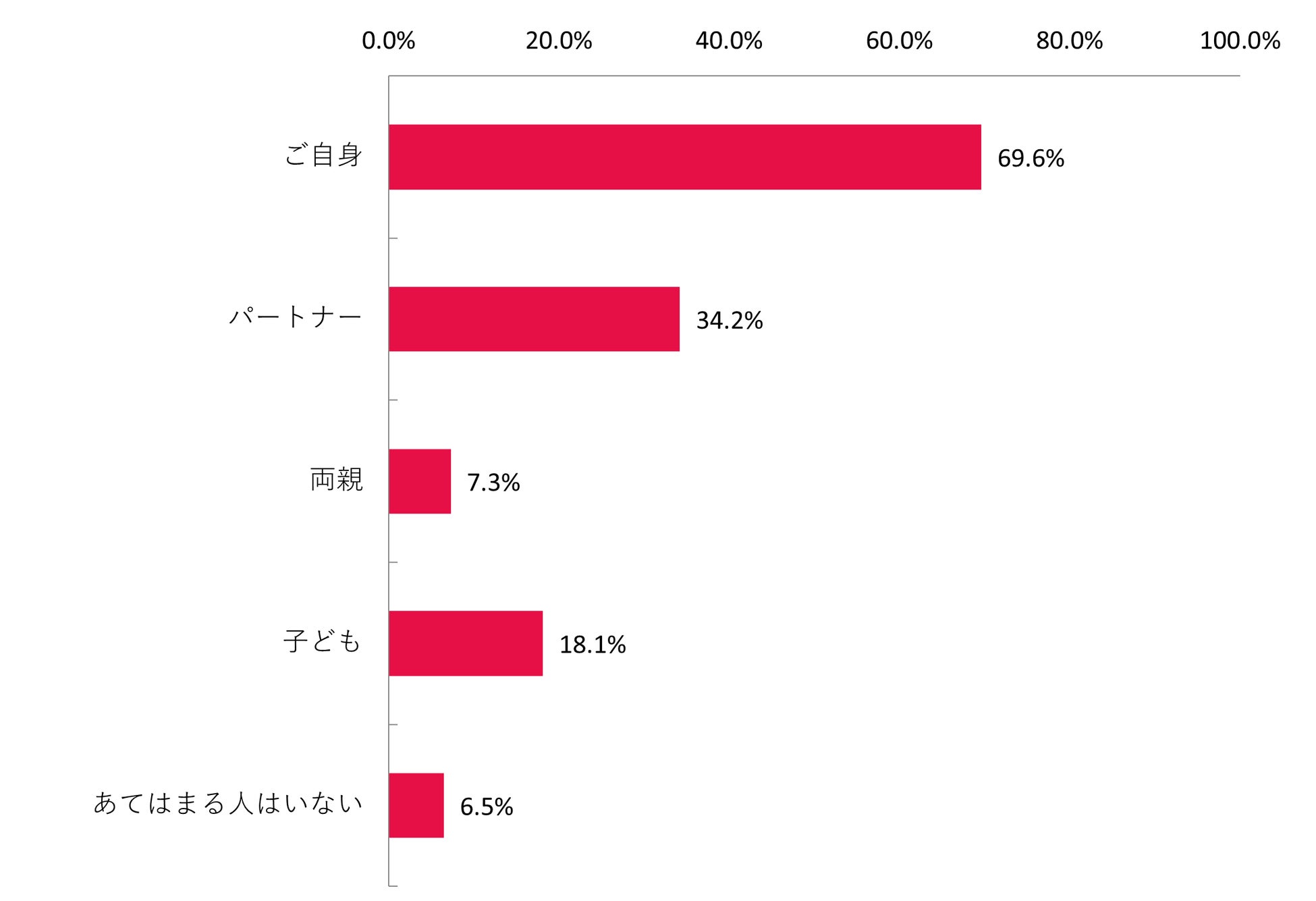 ご家族で中古のスマートフォンを利用している人について、当てはまるものをすべてお答えください。※中古のスマートフォンを購入して利用している場合や、家族内でのスマートフォンのおさがりを使用している場合も含む。