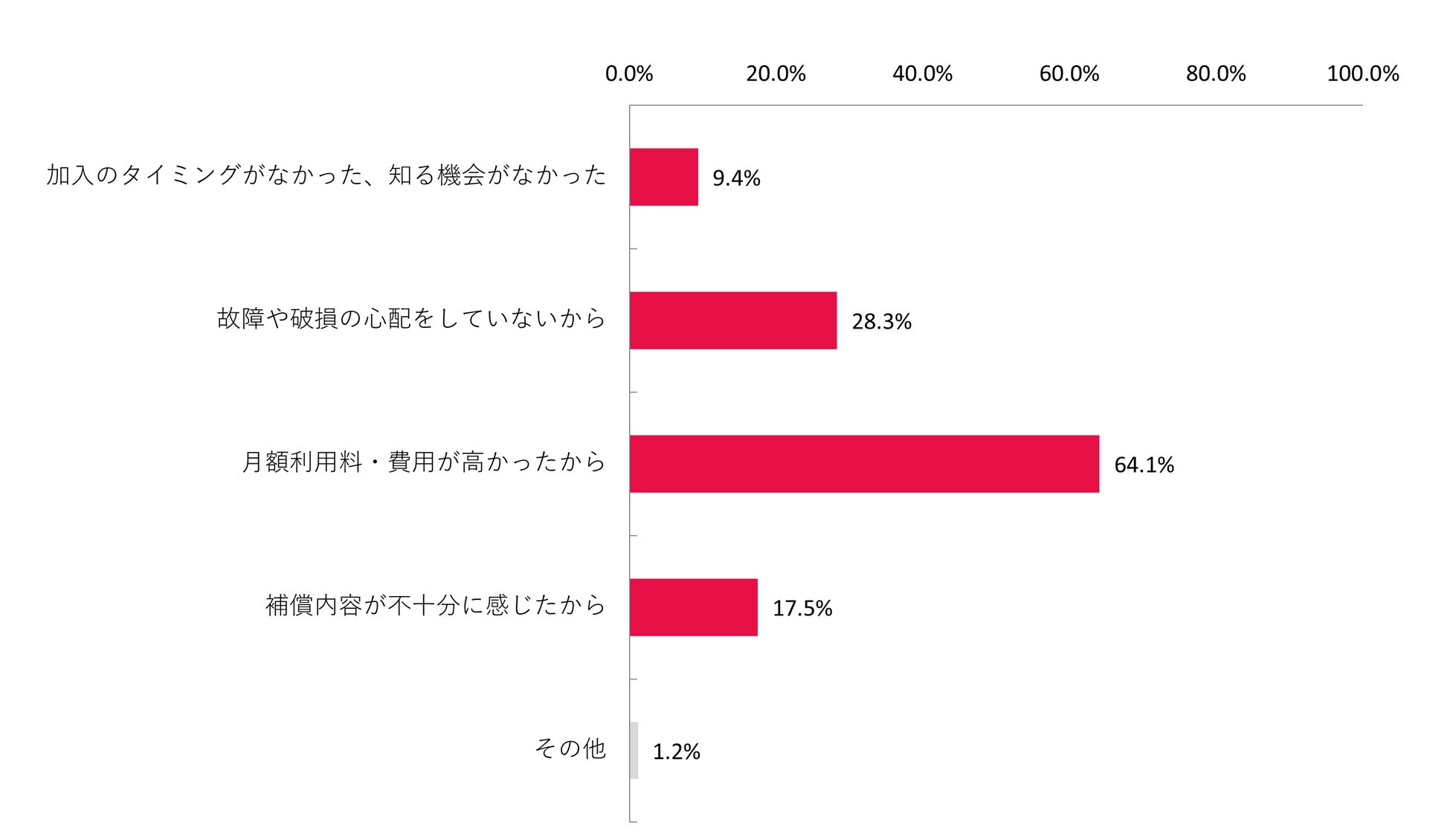 ◆加入した理由は、故障や破損をしたことがあり心配だからが過半数、加入していない理由は、コスト面での不満が6割強