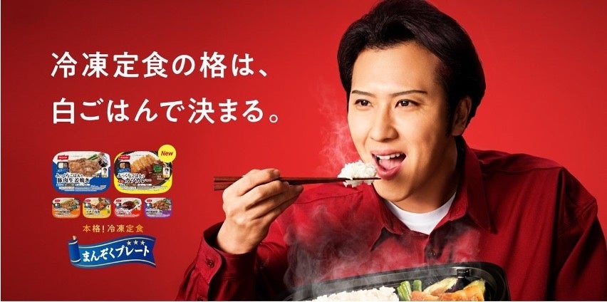 まるでドラマのワンシーンのようにおいしそうに白ごはんをかき込む松也さんに、空腹の方は視聴要注意!?尾上松也さん出演、まんぞくプレート新CM