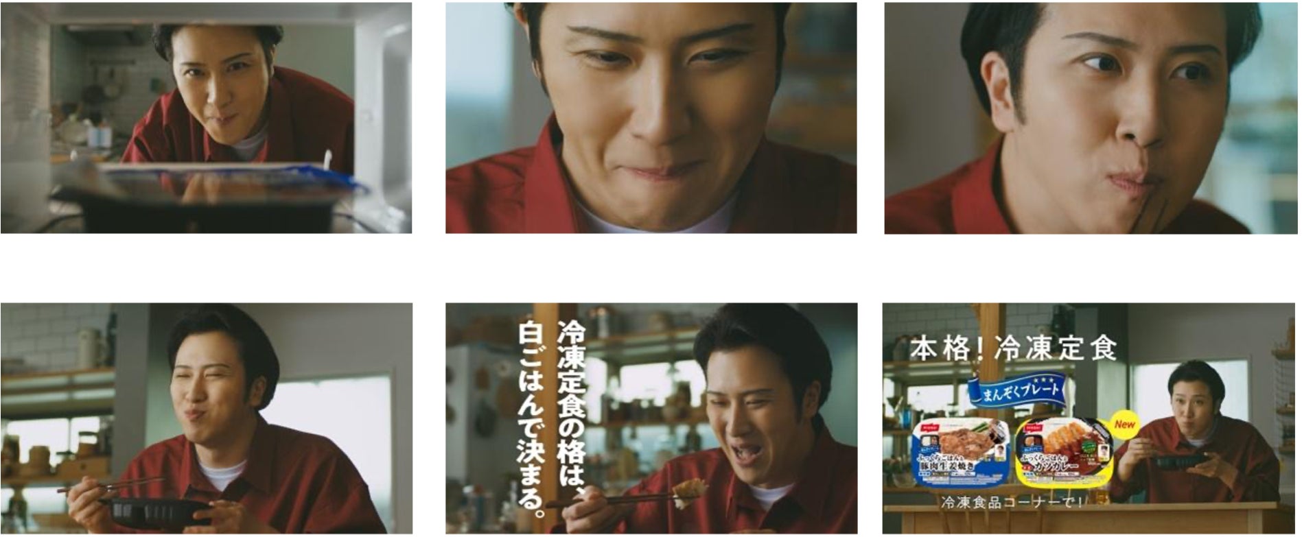 “おいしそうに食べる姿、それ自体をドラマに!”というコンセプトで制作された本CMは、「まんぞくプレート ふっくらごはんと豚肉生姜焼き」を電子レンジから出して食べているだけの中に、食べる前の高揚感、食べてみての感動を松也さんのありありとした表情で溢れんばかりに表現しています。その様子をあえて淡々としたナレーションで際立たせ、ドラマ仕立てにすることで、思わず「やられた!」と声が出てしまう松也さんのリアクションに共感すること間違いありません。空腹時の視聴にはご注意ください(笑)。