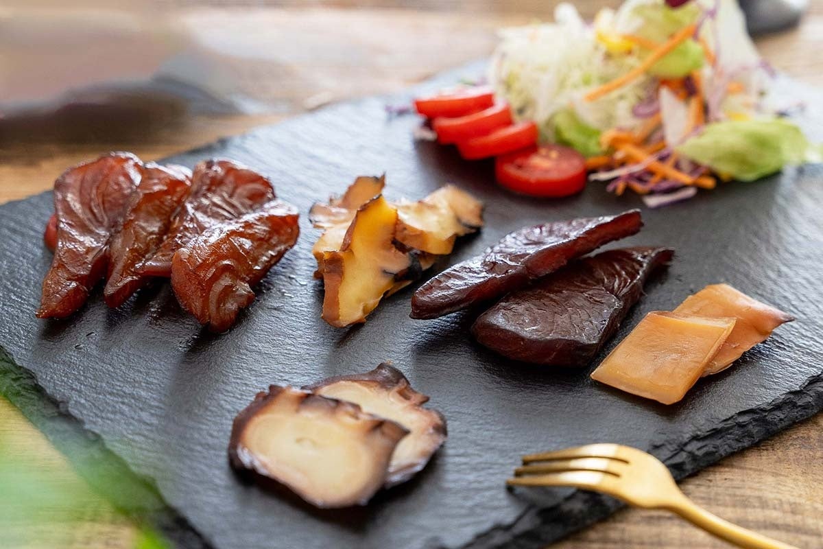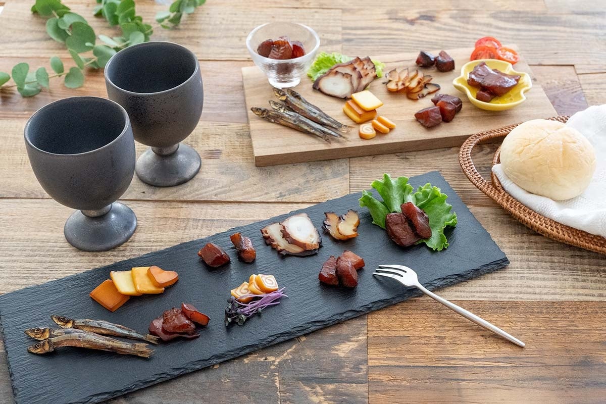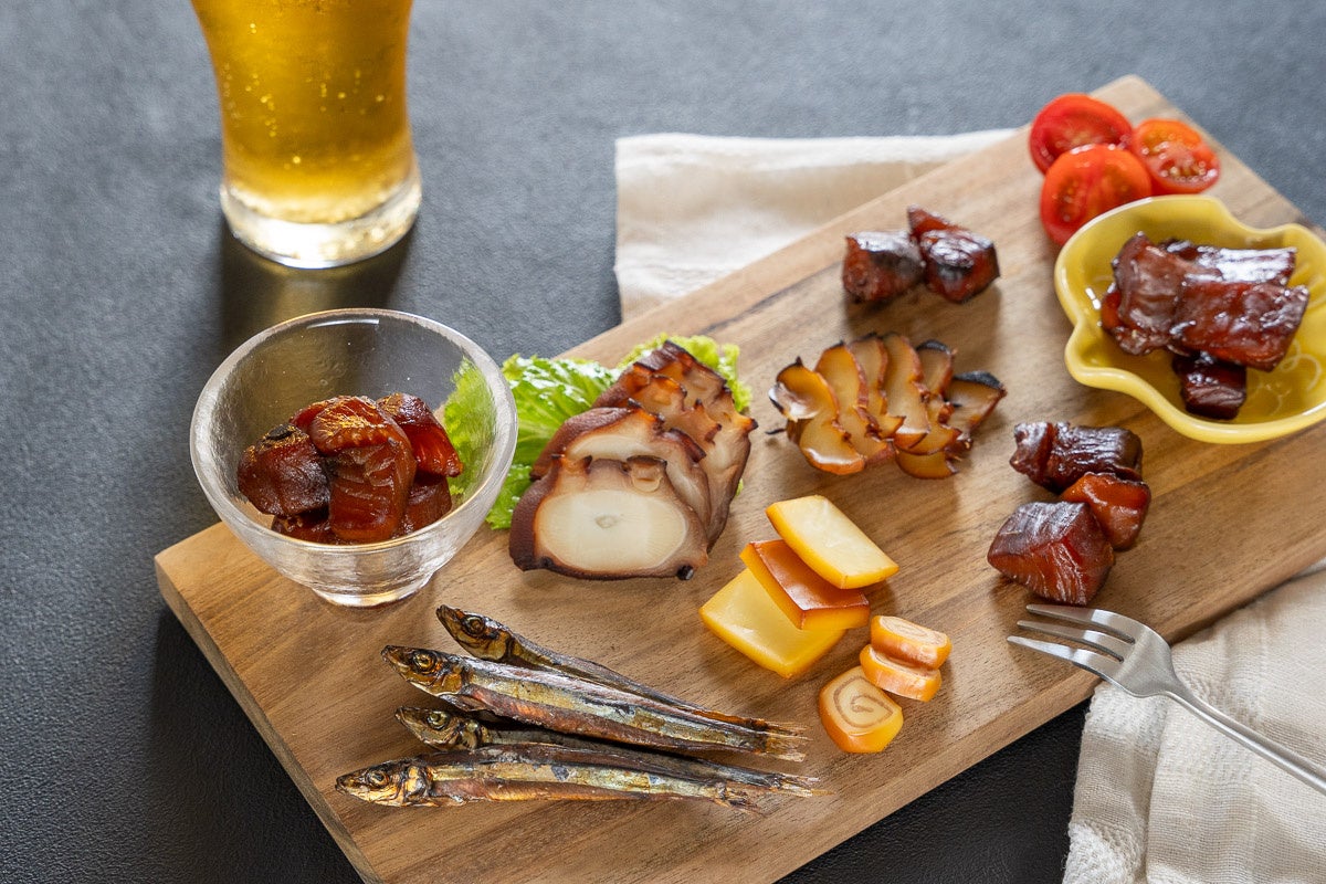 朝獲れた魚介を丁寧に下処理し、特製燻製液に漬け込んだ後、オリジナルブレンドのチップで燻製し、仕上げに五島特産の椿油を使用しました。「鮮度」にこだわることで一層、魚介の美味しさが凝縮された燻製は、お酒のおつまみにおすすめです。