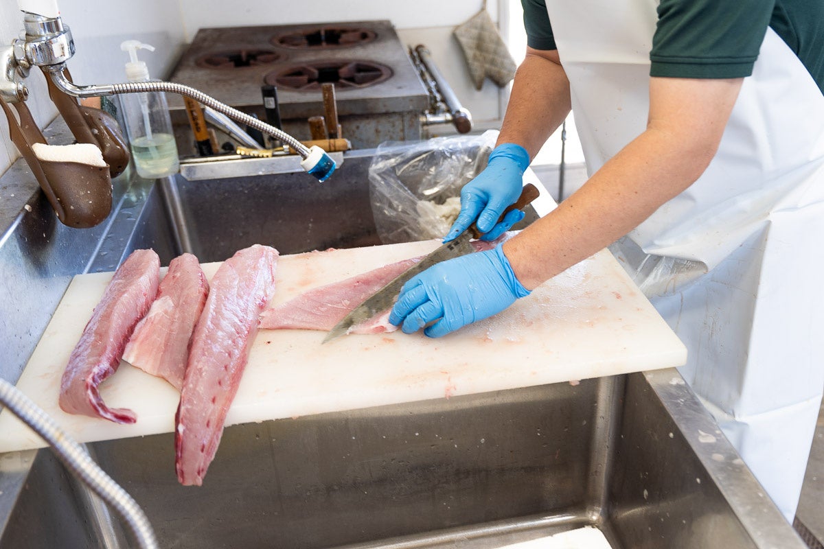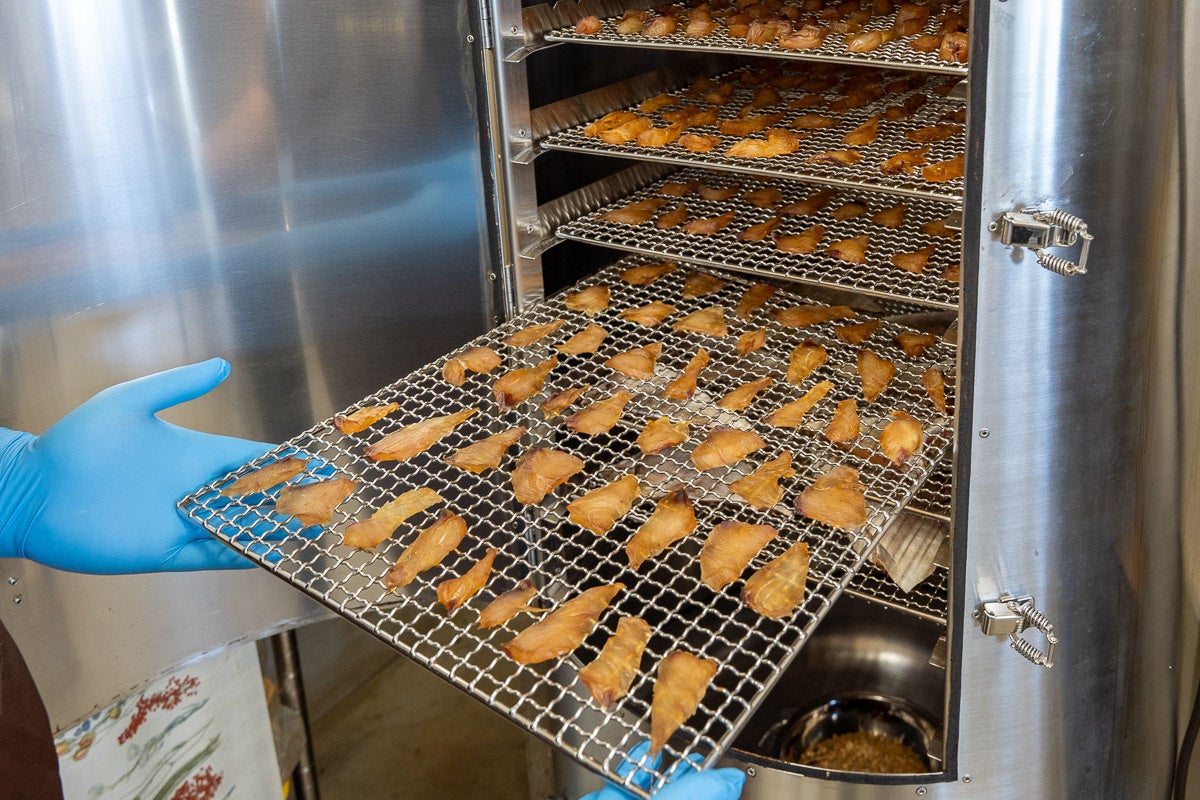 五島の魚市場で鮮魚仲買人が自ら目利きした旬の新鮮魚介は、寿司屋や料亭で刺身として提供できるほどにレベルが高く、その日のうちに丁寧に仕込みを行い、燻製の工程に入ります。五島くんせい工房は、この最上の新鮮魚介を燻製に使える幸せを感じながら、美味しく家族でも安心して楽しんでいただける商品作りを心がけています。