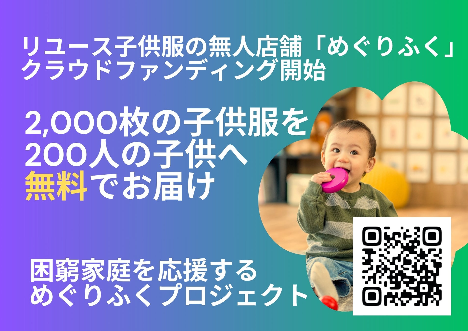 無人店舗リユース子供服屋「めぐりふく」全国の生活困窮家庭にリユース子供服を無料で届けるクラウドファンディングを開始「めぐりふくプロジェクト」