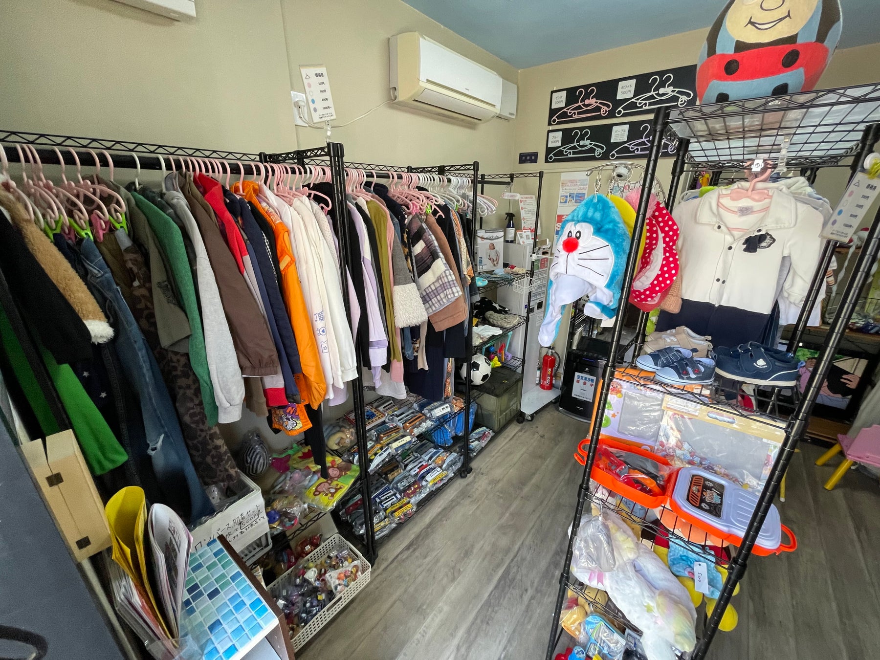 不要になった子供服やおもちゃを店頭のリユース品回収ボックスに寄付していただき、SDGsの観点で「ゴミを減らす活動」をし、リユース子供服を中心に、靴、おもちゃ、ベビー用品、マタニティ用品などを取り揃えております。