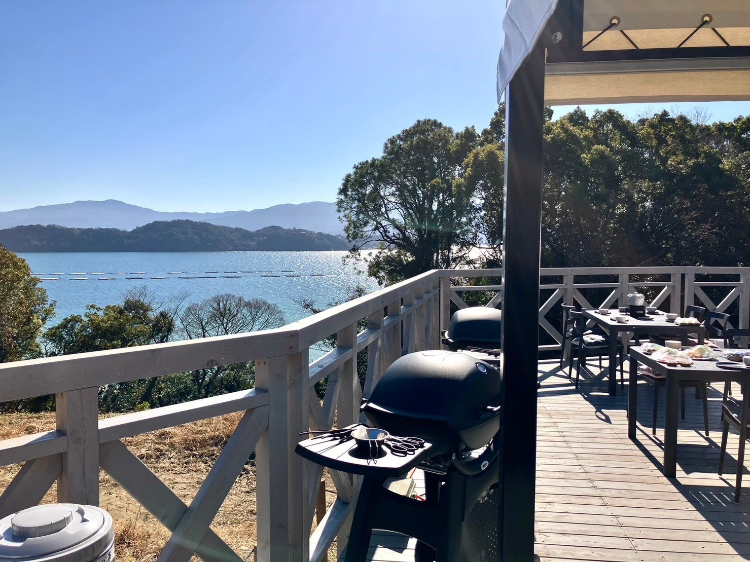 ドームテントから見える美しい糸島の海と緑あふれる山、美しい自然に癒される宿泊体験。