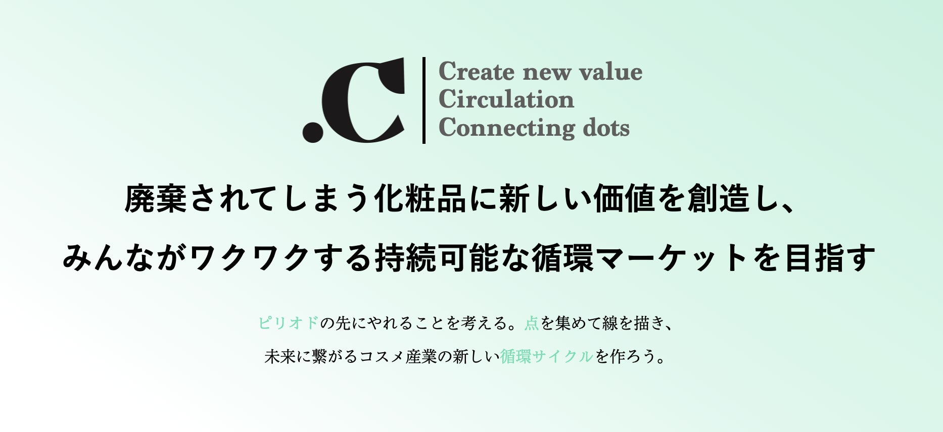 ドットシーはこの問題を解決する一歩として、「化粧品ロスに新しい循環サイクルを」をテーマに「.C(ドットシー)」を開設しました。