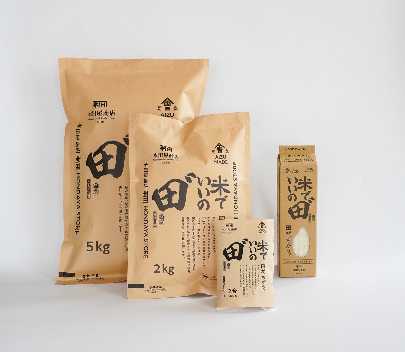 有名寿司店や高級中華料理店など、食に対する感度の高い顧客を持つ飲食店様から特に好評をいただいているお米です。日本で3か所しかないコシヒカリ栽培最適地のひとつ会津の気候風土に育まれ、生育データを読み取りながら経験豊富な生産者が丹精こめて栽培しています。豊かなかおりと弾力のある米粒、コシヒカリらしい甘み、炊飯後の固くなりにくさが特徴です。日本国内でも「米でいいの田゛」として「HONDAYA-MAI」をご賞味いただけます。