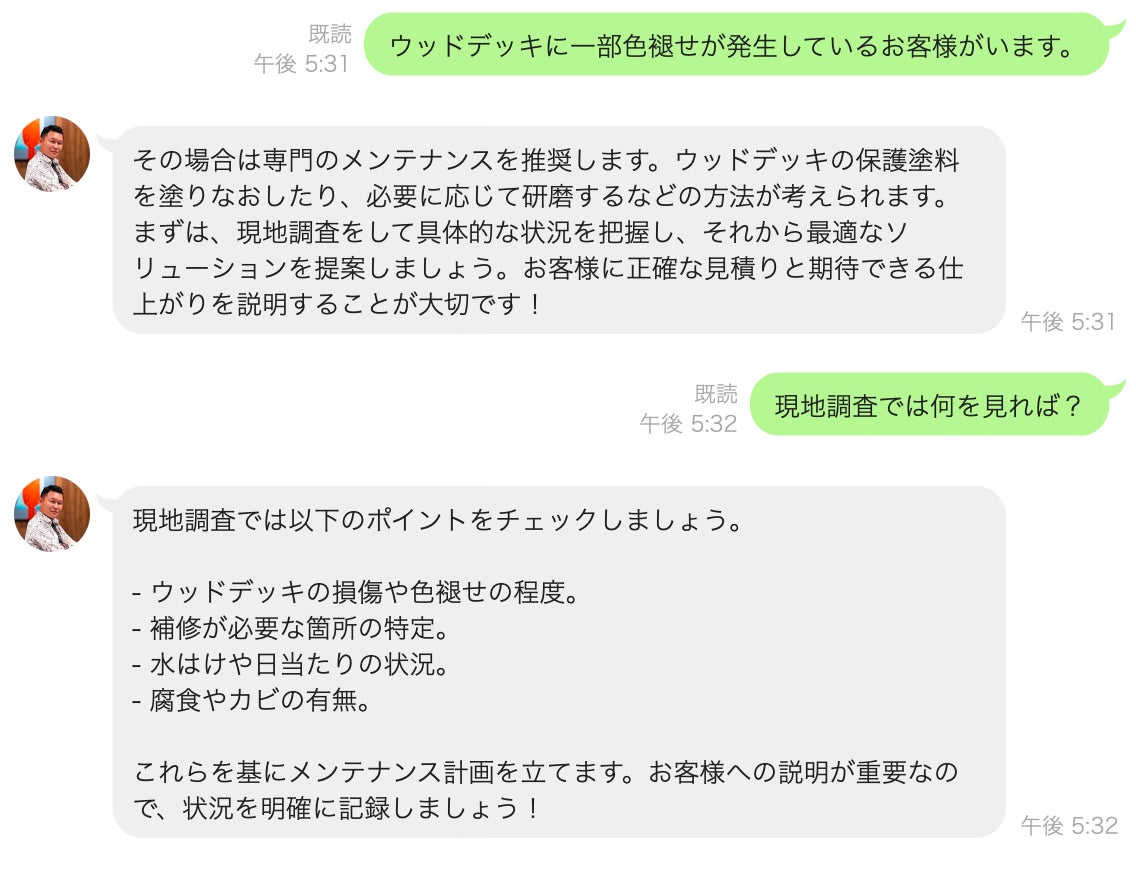 【AI社長の会話画面例(LINE版)】
