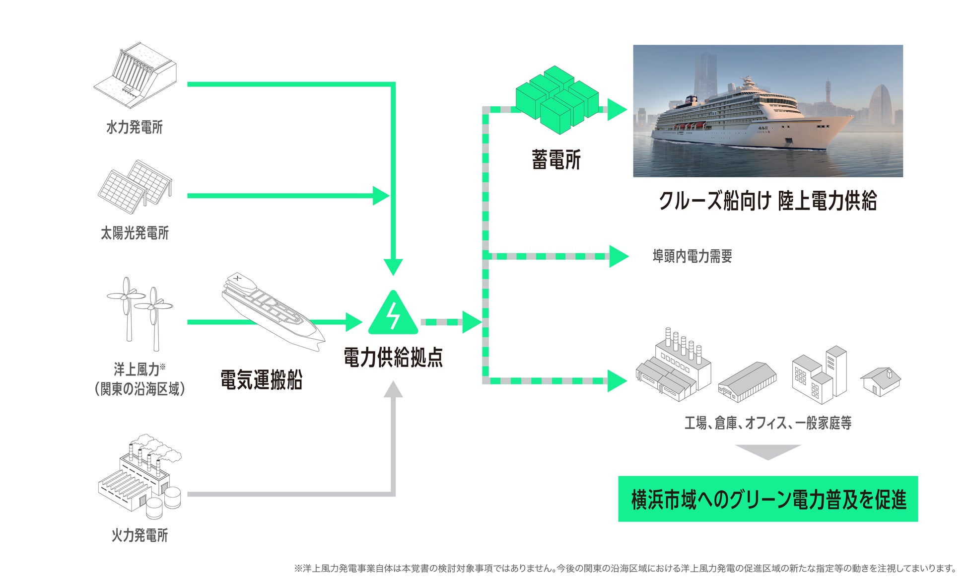 大型クルーズ船への日本初の陸上電力供給の実現及び横浜市臨海部へのグリーン電力供給