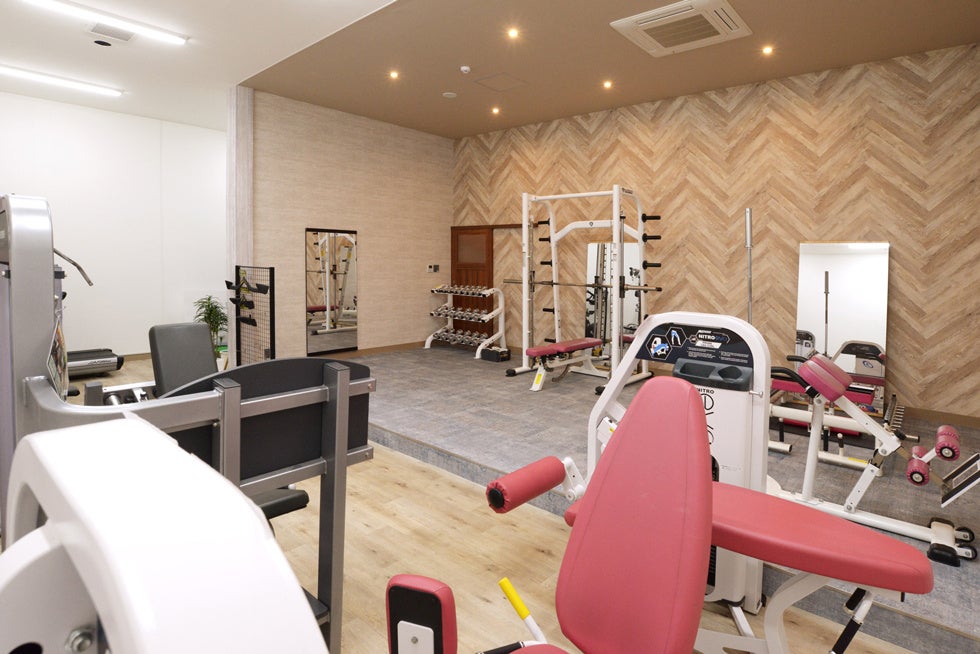 ランニングマシンやエアロバイク、レッグプレスなどトレーニングマシンも充実しており