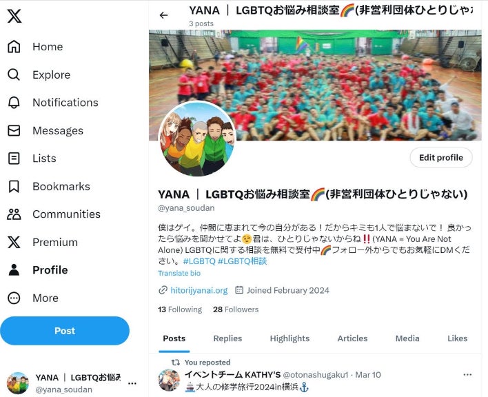 X(旧Twitter): YANA|LGBTQお悩み相談室 https://twitter.com/yana_soudan
