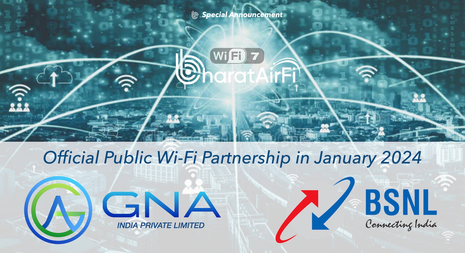 Bengaluru, Karnataka, India 2024.3.19 - GNA INDIA PRIVATE LIMITED.,(以下、「GNA」)は、誇りを持って、インドの通信事業者であるBharat Sanchar Nigam Limited(以下、「BSNL」)とのPublic Wi-Fi Partners (PWP)契約を締結したことをお知らせいたします。
