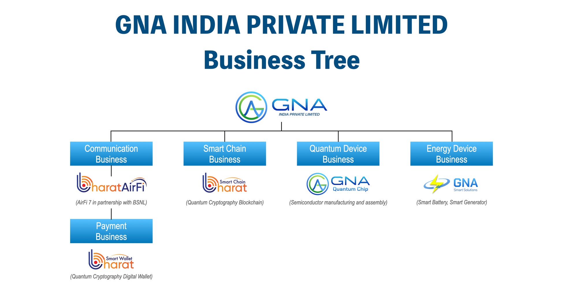 GNAが提供するケーブル不要の高速インターネットサービスを提供するWi-Fiブランドです。国営通信会社BSNLとの業務提携により、次世代Wi-Fi通信インフラを開発し、インド国民に安価で快適かつ高速な通信環境を提供していきます。インド政府が推進するDigital Indiaにおける重要なデジタル決済プラットフォームであるBharat Smart Chain(日本の開発チームが手がける世界初量子暗号技術を使ったブロックチェーン)で利用されるBharat Smart Walletは、Bharat AirFiサービスの決済に必要なセキュリティとデジタルソリューションを提供します。ユーザー数はBSNLの既存契約者約1億人が対象となる。