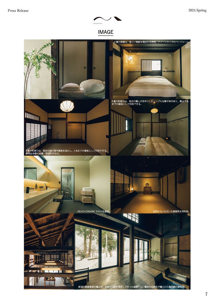 合同会社穀宇(本社:新潟県妙高市西野谷 54 番地、代表:蔡紋如)は、築 120 年の歴史を誇る空き家を活用し、新潟県妙高市に新しい旅の拠点となる古民家宿「MAHORA 西野谷」を 2024 年4 月 6 日にオープンいたします。この特別な場所では、1 泊 2 日での里山の暮らしを体験できるプランをご用意しており、宿泊施設だけでなく交流スペースも併設しています。