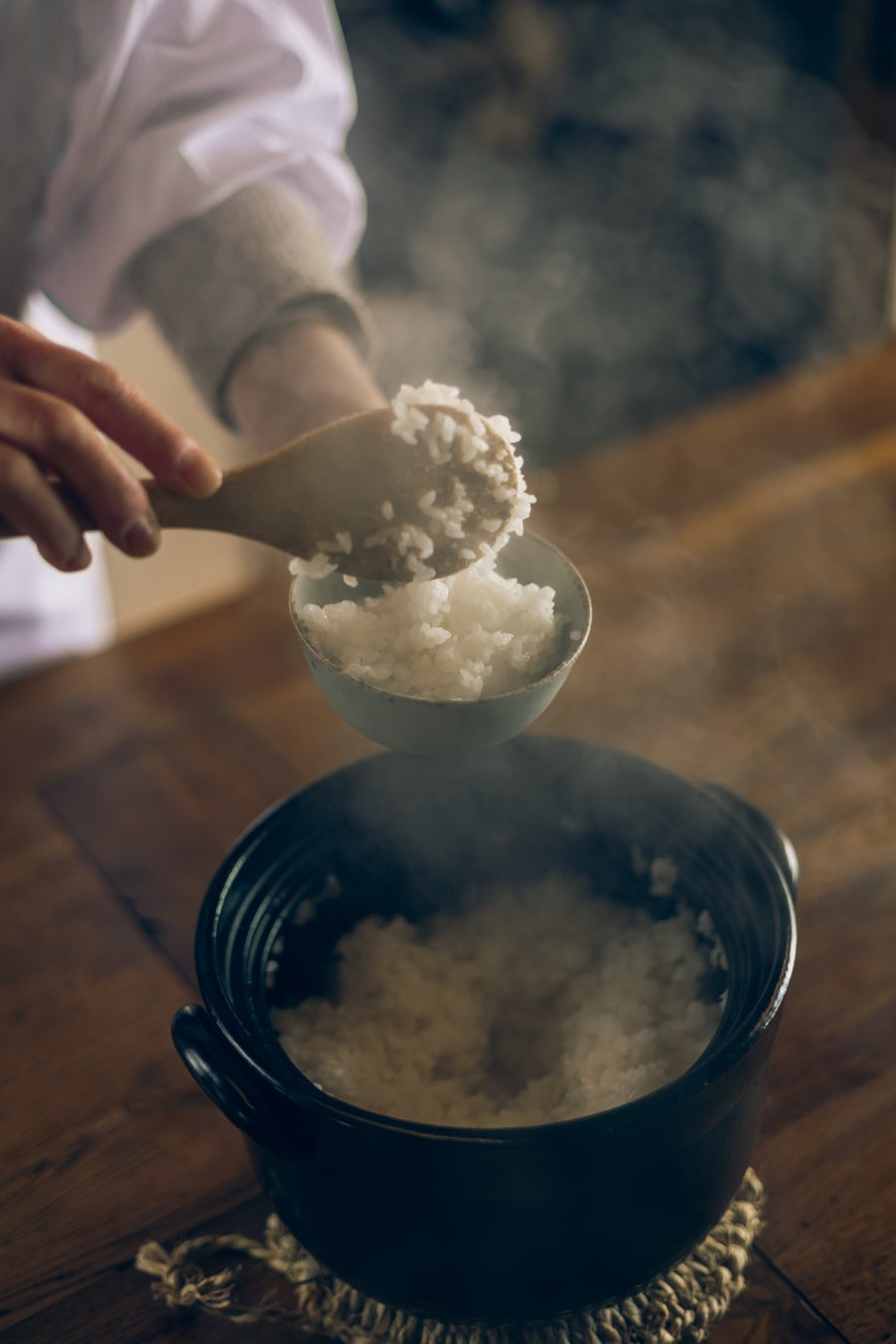 食事は、地産地消にこだわった食材を使用します。 自家栽培(服部米蔵)のコシヒカリは環境に配慮しながら健康的な食生活を提供できるように育てています。